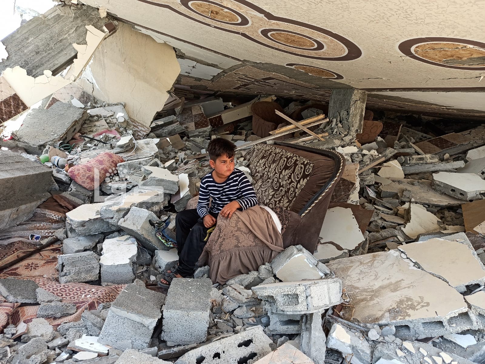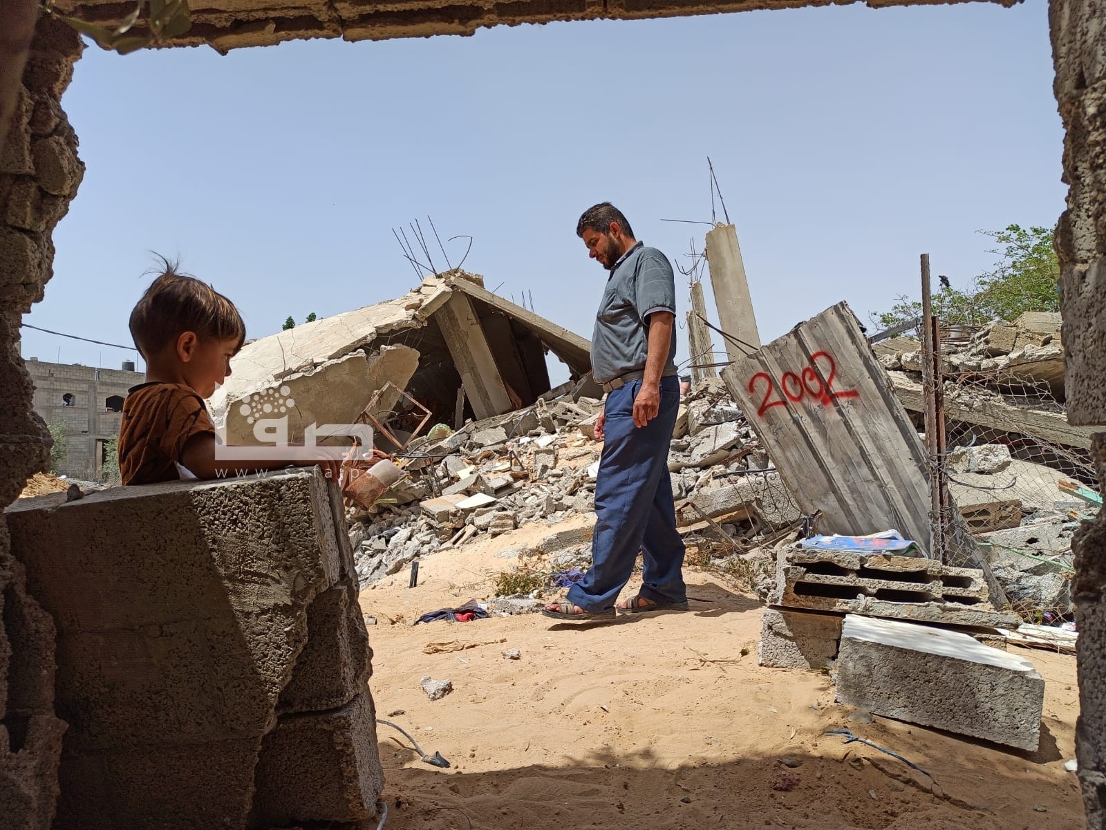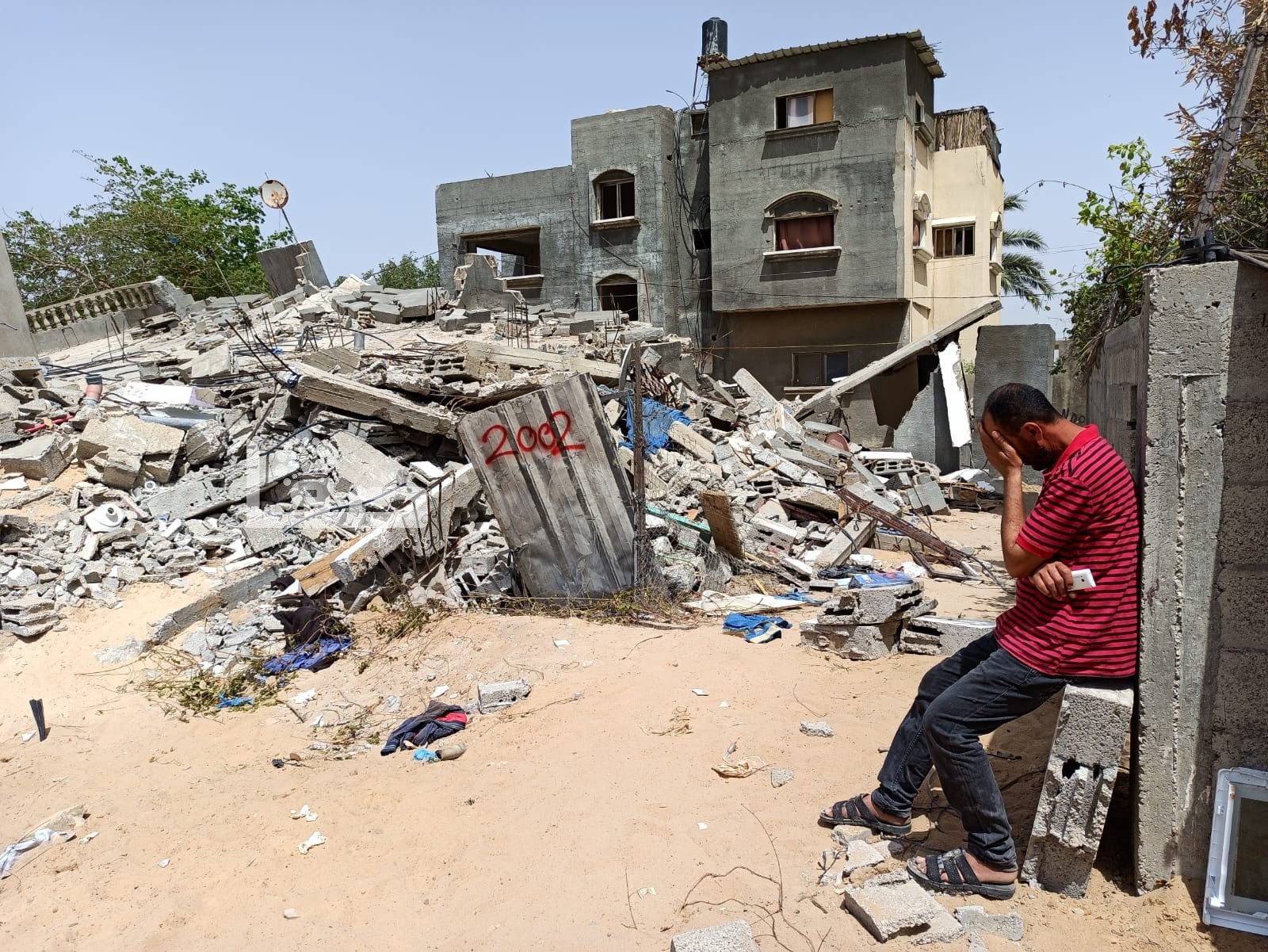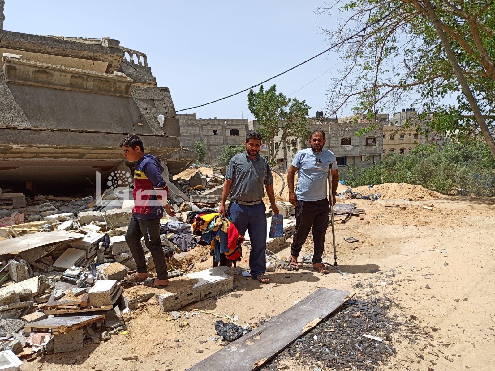 تنهد قليلاً ثم جلس ووضع يده على رأسه فوق الأنقاض وأضاف "قصف المنزل دون سابق إنذار مدنيين عزل مزارعين نعمل نعيش في منطقة نائية أي خطر شكلناه على (إسرائيل) هذا إجرام! أين العالم؟! حرموني أسرتي حرموني أطفالي وفرحتهم بالعيد والمدرسة (..)!".
