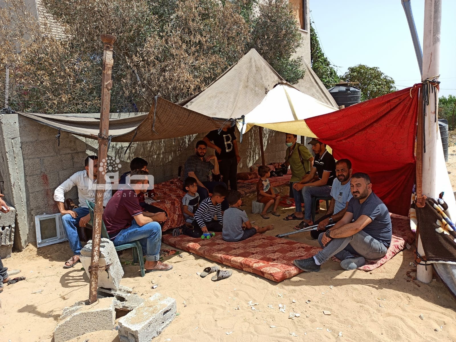 فعلى بعد أمتار من ركام المنزل الذي يتوسط حيًا ريفيًا كان ملاذًا للهاربين من ضجيج المدينة لتنفس الهواء الطلق، جلس أشقاء "محمد" ووالده الكهل وأطفالهم داخل خيمة باتت مأوىً لهم يؤازرهم بعض الجيران في الجلوس وجلب الطعام.