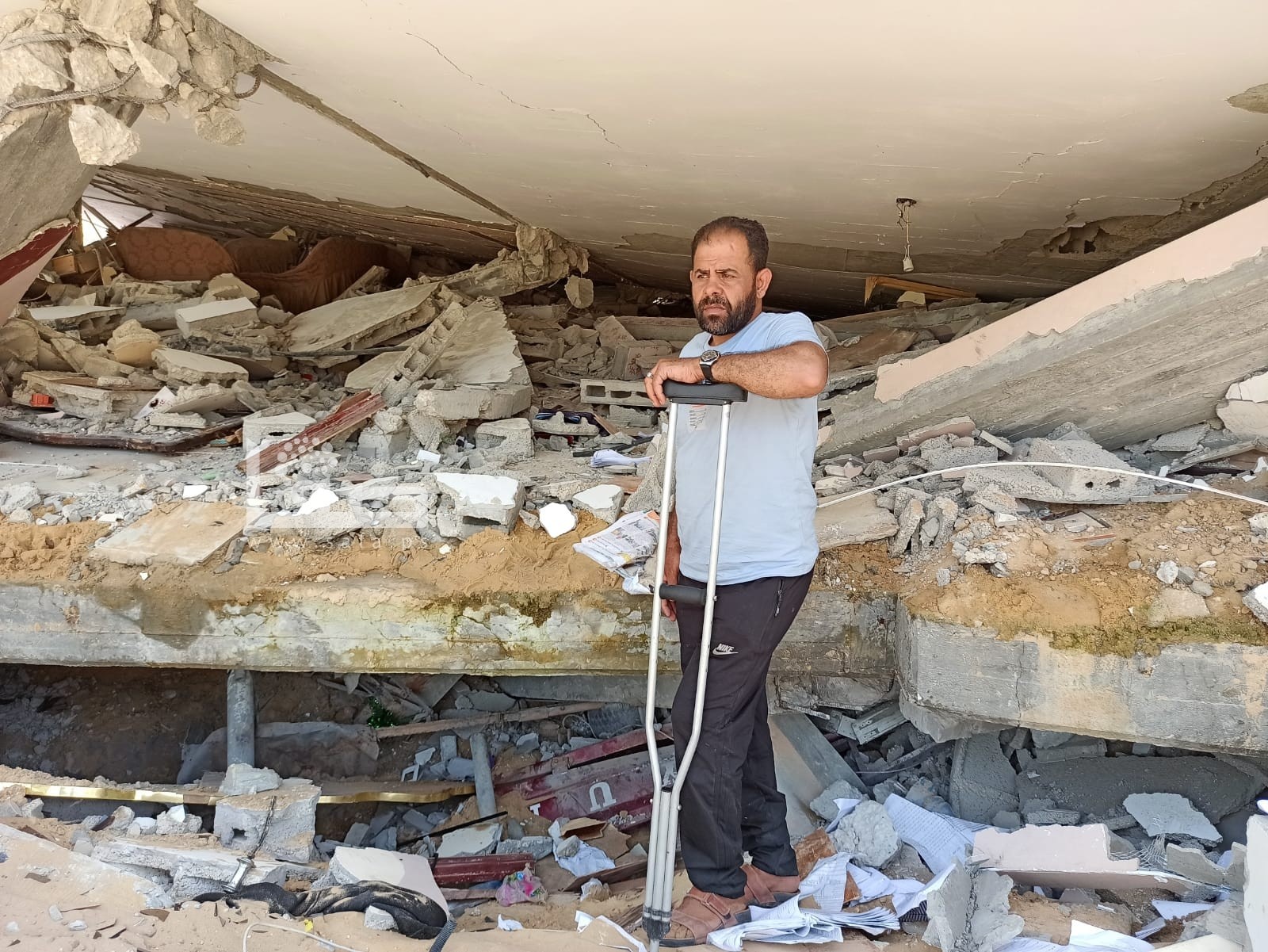 أما الأربعيني إيهاب، شقيق محمد الناجي من الموت، يتسلح بعكازٍ معدني منذ إصابته في قدميه ولا يستطيع السير دونه، ويروي لمراسل "صفا" قصة نجاته هو وزوجته وأطفاله وكيف أن ثلاجة المطبخ أنقذته من موتٍ مُحقق وعمود غرفة أنقذ أسرته.