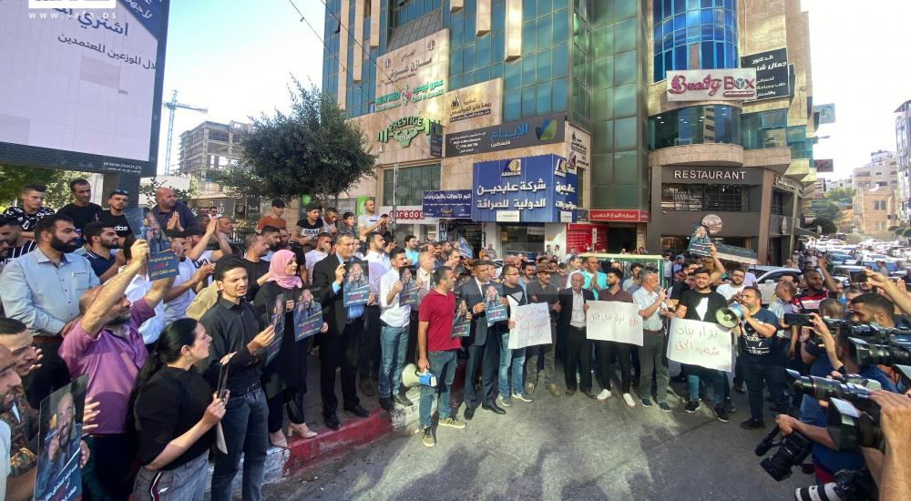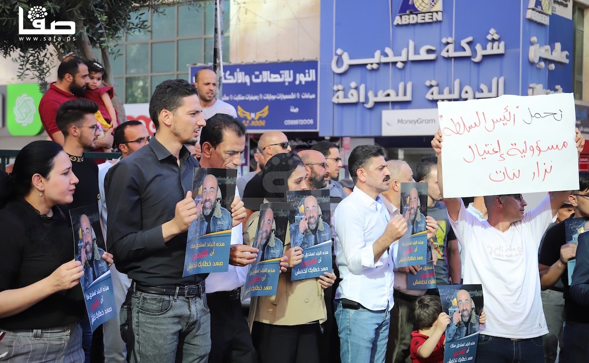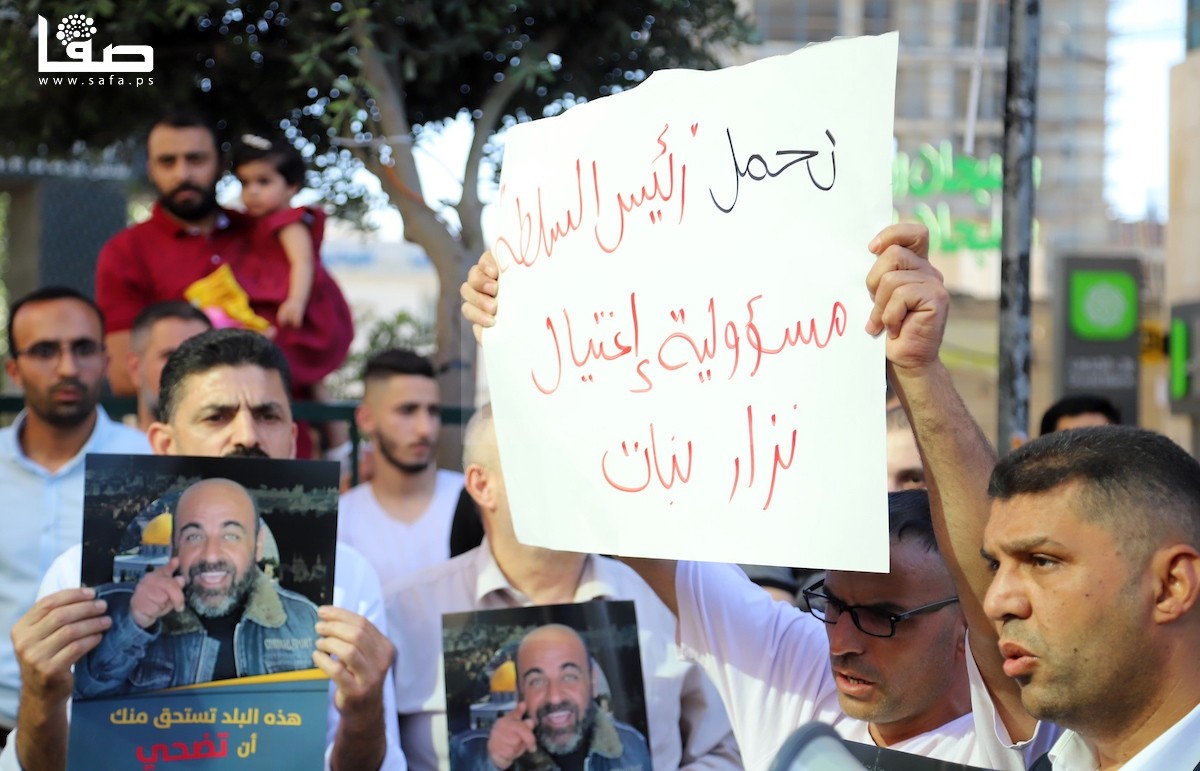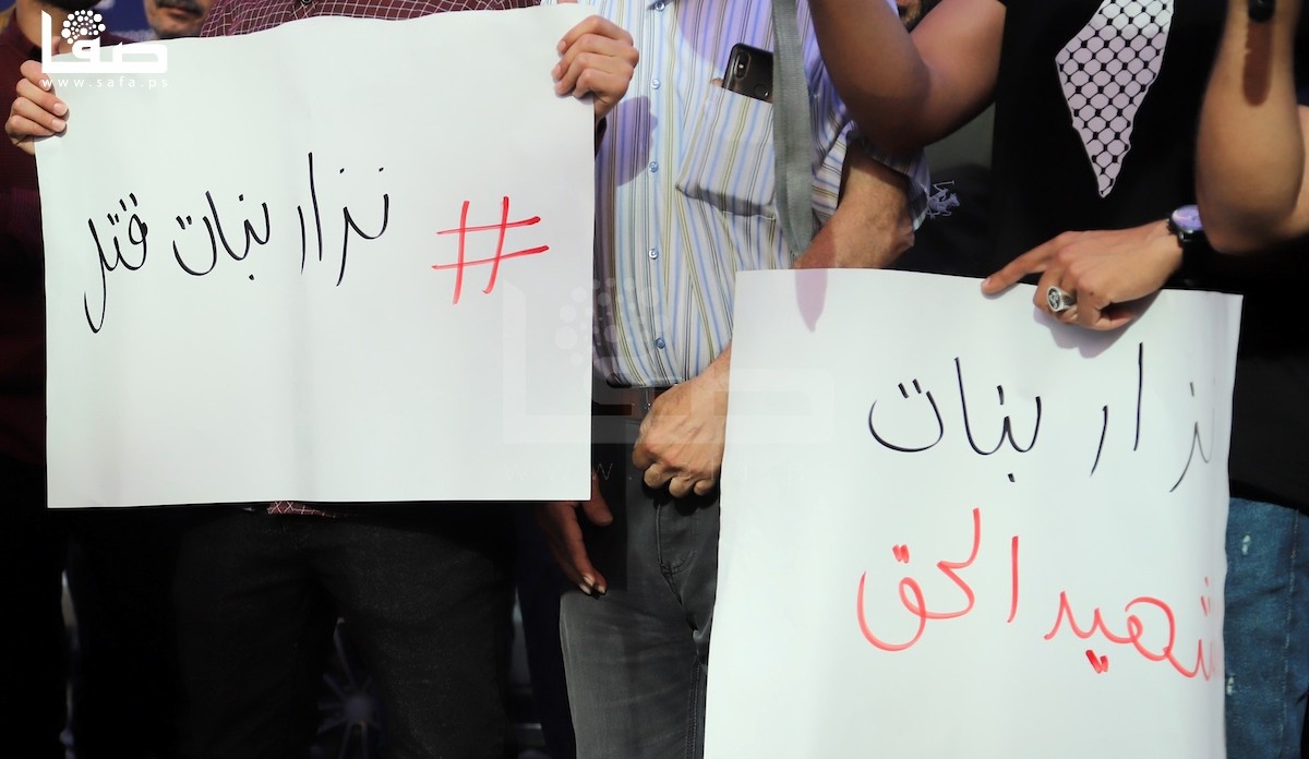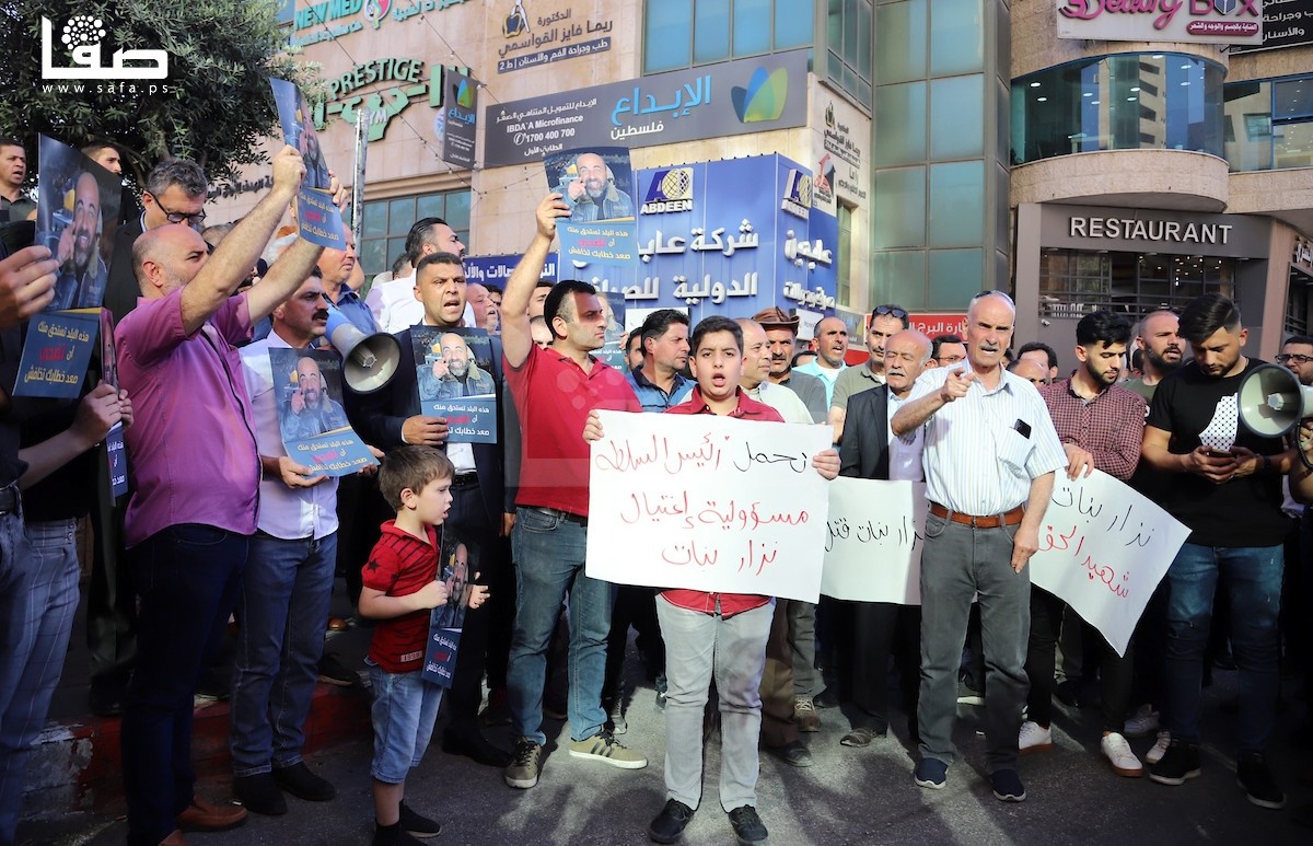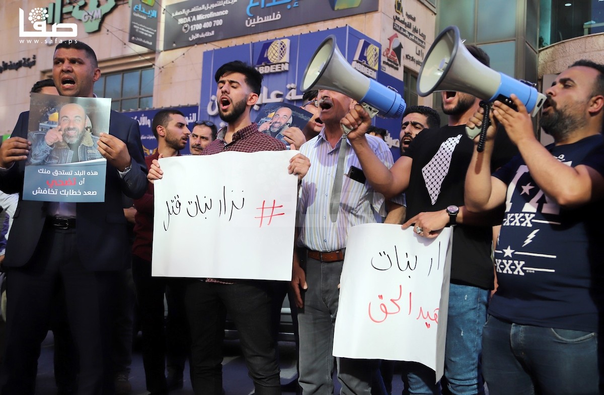 وردد المتظاهرون هتافات غاضبة منددة باغتيال الأجهزة الأمنية للناشط بنات، وتطالب بمحاسبة المسؤولين القصاص من الجناة.