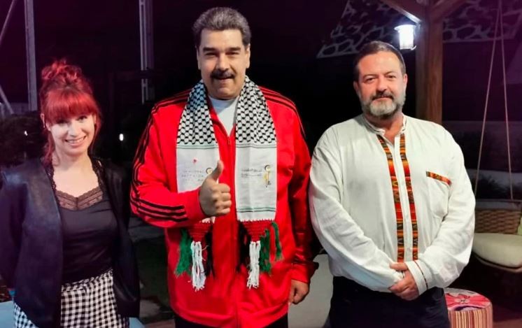 نشرت الناشطة السياسية مارتا مارتن -على حسابها الشخصي في تويتر الأحد-صورا للرئيس الفنزويلي نيكولاس مادورو وهو يرتدي الكوفية الفلسطينية.
