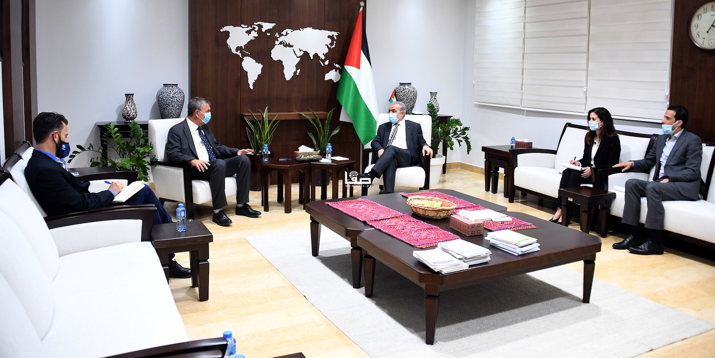 بحث رئيس الوزراء محمد اشتية الاثنين برام الله مع المفوض العام لوكالة "أونروا" فيليب لازاريني أوضاع اللاجئين الفلسطينيين في كافة أماكن تواجدهم، والوضع المالي للوكالة، في ظل التحديات السياسية والاقتصادية التي تمر بها المنطقة بشكل عام.