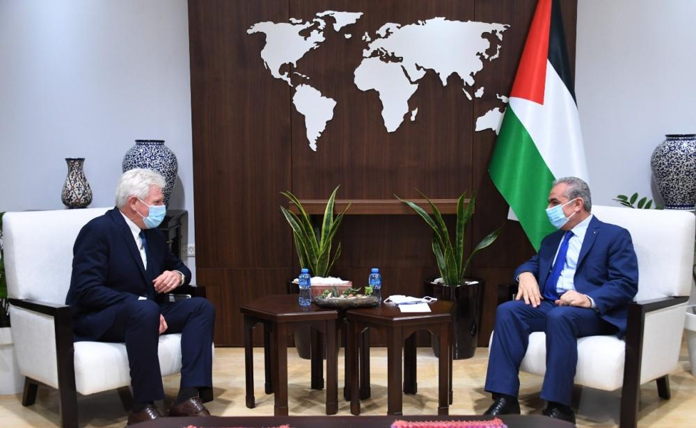 اشتية يبحث مع عضو بارز بحزب أمريكي آخر التطورات