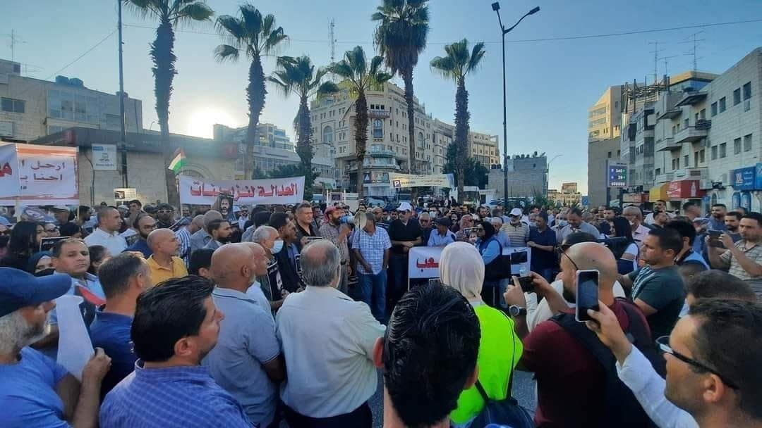 وتجمع مئات المواطنين وسط المدينة بمناسبة مرور أربعين يوما على اغتيال بنات، حيث رفعوا لافتات حملت "الشرعية من الشعب"، داعيين لمحاسبة قتلة بنات وتحقيق العدالة.