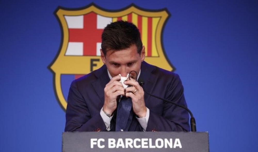 أجهش نجم فريق برشلونة الإسباني لكرة القدم الأرجنتيني ليونيل ميسي بالبكاء في بداية مؤتمره الصحفي الذي أعلن فيه رحيله نهائيًا عن صفوف النادي الذي أمضى في صفوفه 20 عامًا، في الوقت الذي رجح فيه انتقاله إلى صفوف باريس سان جيرمان الفرنسي.