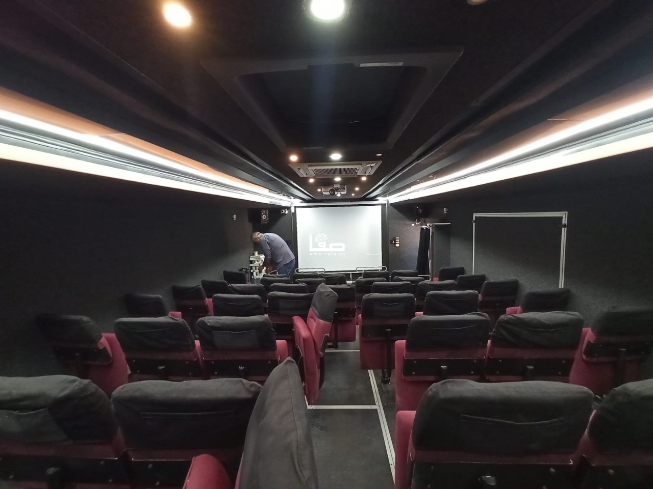 وأضاف "كذلك مزودة بشاشة لعرض الأفلام، وتكييف مركزي، وسماعات عالية الجودة، وأجهزة صوت، ومدرج للمقاعد"؛ لافتًا إلى أن الحافلة من الداخل والخارج مهيأة بالكامل لتكون سينما.
