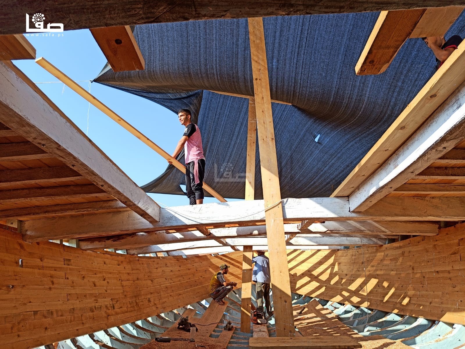 ويبلغ طول المركب المُصنع من أخشاب ومعدات محلية نحو 21 مترًا، بعرض من 4 إلى 6 أمتار، ومن المتوقع أن يستمر العمل به أشهر، حال دخلت كامل معداته اللازمة من معابر الاحتلال الإسرائيلي.