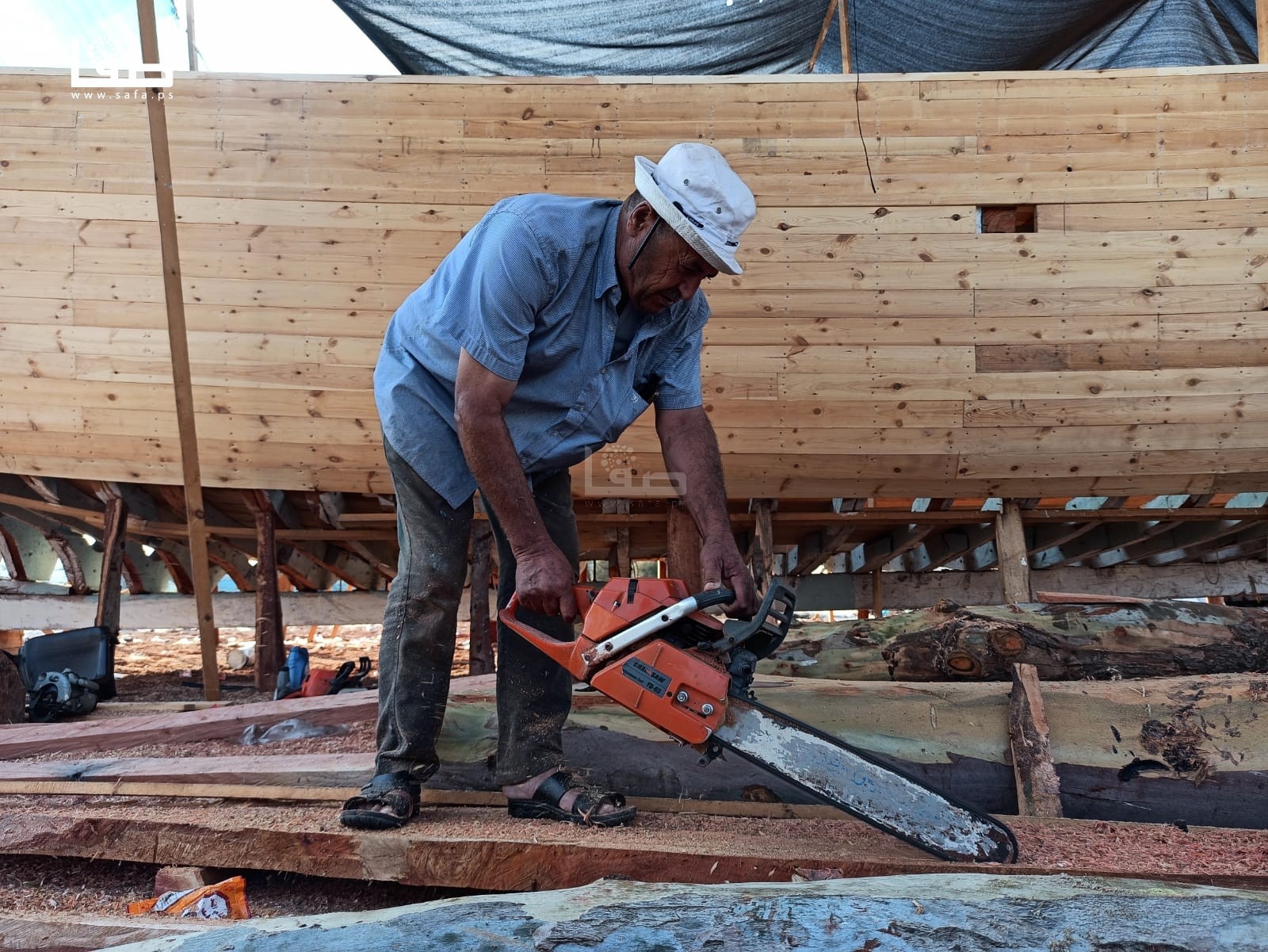 ويؤكد علون أن قلة المعدات تزيد الوقت والجهد في صناعة القارب، مشيرًا إلى أن العمل يسير "عود عود، وبمنشار صغير".