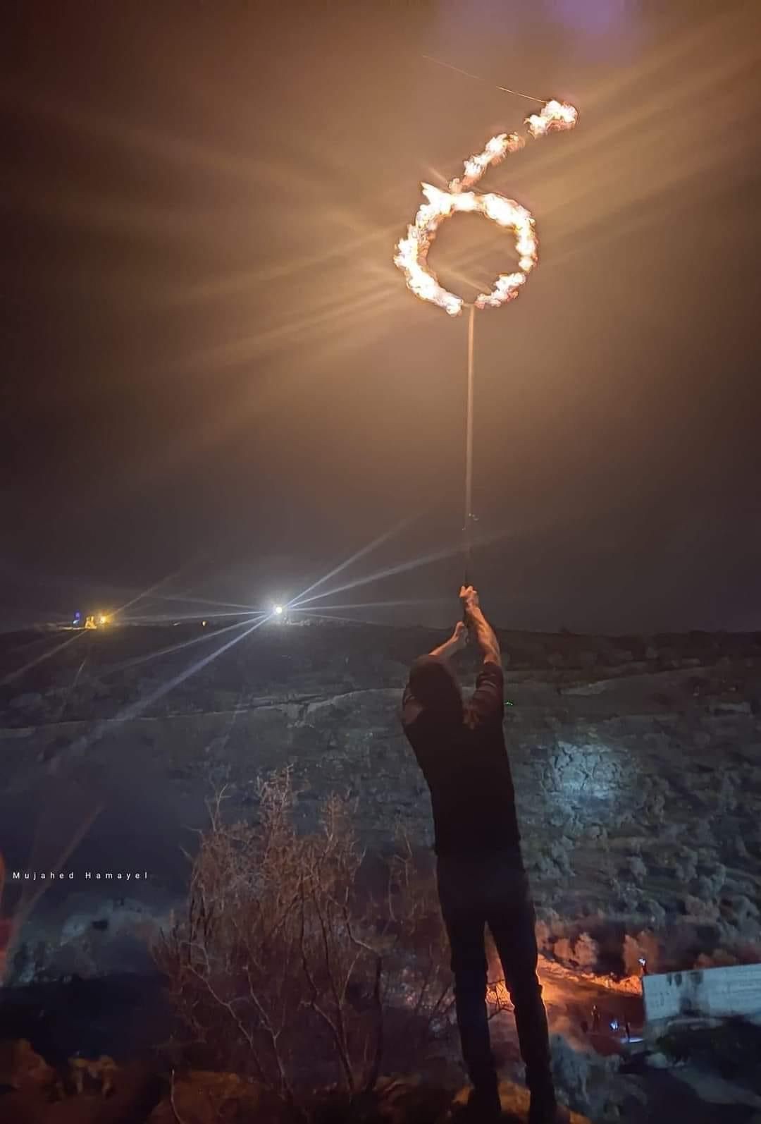 وأطلقت الألعاب النارية قبالة البؤرة الاستيطانية الجاثمة على قمة الجبل، وسط تكبيرات المشاركين وهتافاتهم التي تحيي الأسرى الستة، وجرى توزيع الحلويات احتفاء بهذه المناسبة.