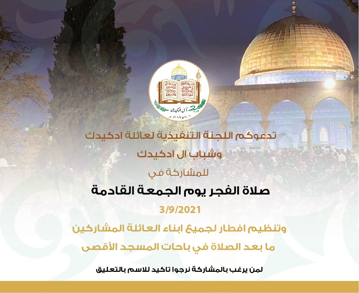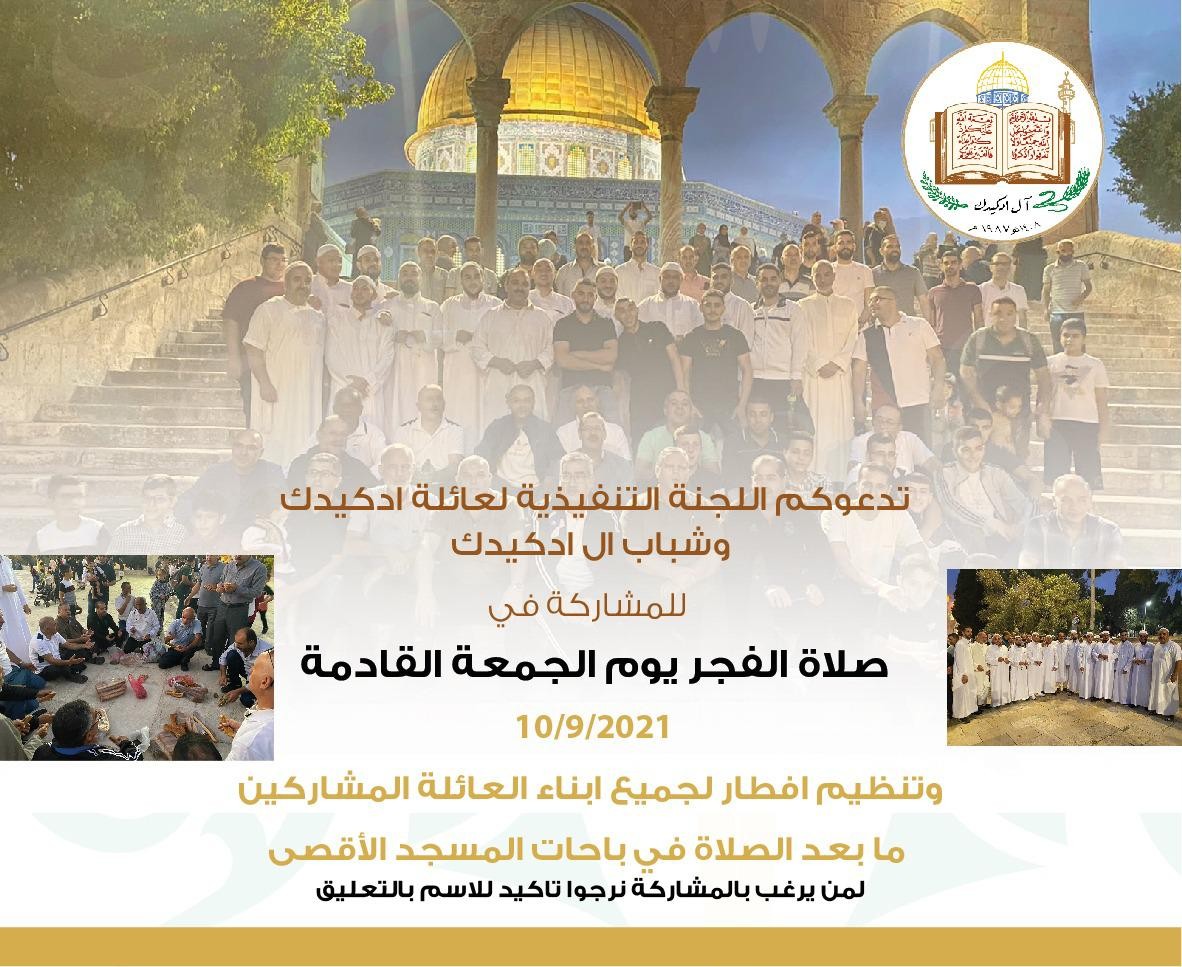 أما بالنسبة لعائلة ادكيدك؛ فدعت لهذه المبادرة على طريقتها الخاصة، بطباعة دعوات لصلاة فجر يوم الجمعة بالمسجد الأقصى، ونظمت إفطارًا لجميع أبناء العائلة ما بعد الصلاة في ساحات المسجد.
