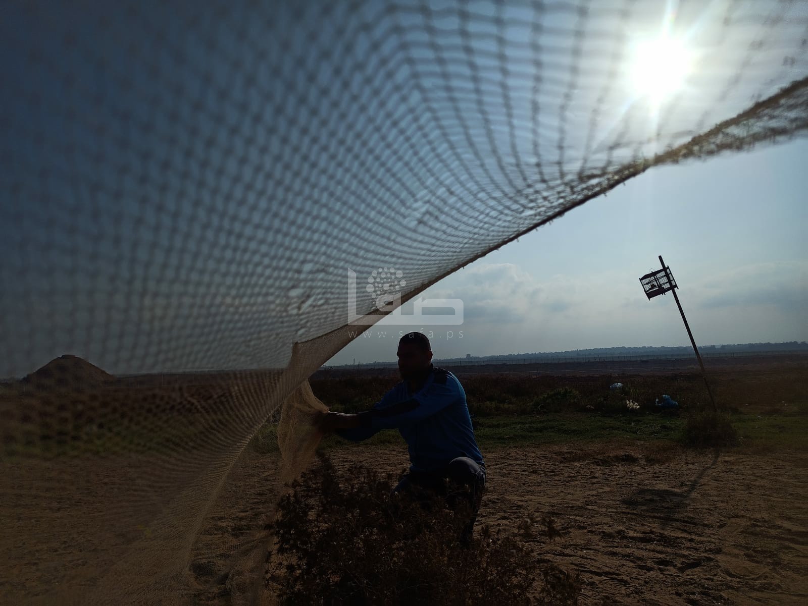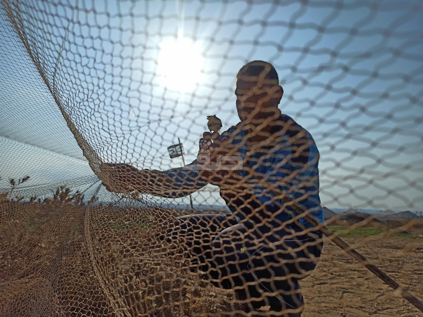 "خالد" يصل نحو الساعة 5:30 صباحًا، يسير ببطءٍ نحو المنطقة، ويحرص على عدم القيام بأي حركة "مُريبة"، قد تكون ذريعة لجيش الاحتلال لفتح النار نحوه؛ فيضع شباك الصياد المموه، كي لا يراها الطير، ويبتعد عنها 100 متر، حاملاً معه زاده من مأكل ومشرب.