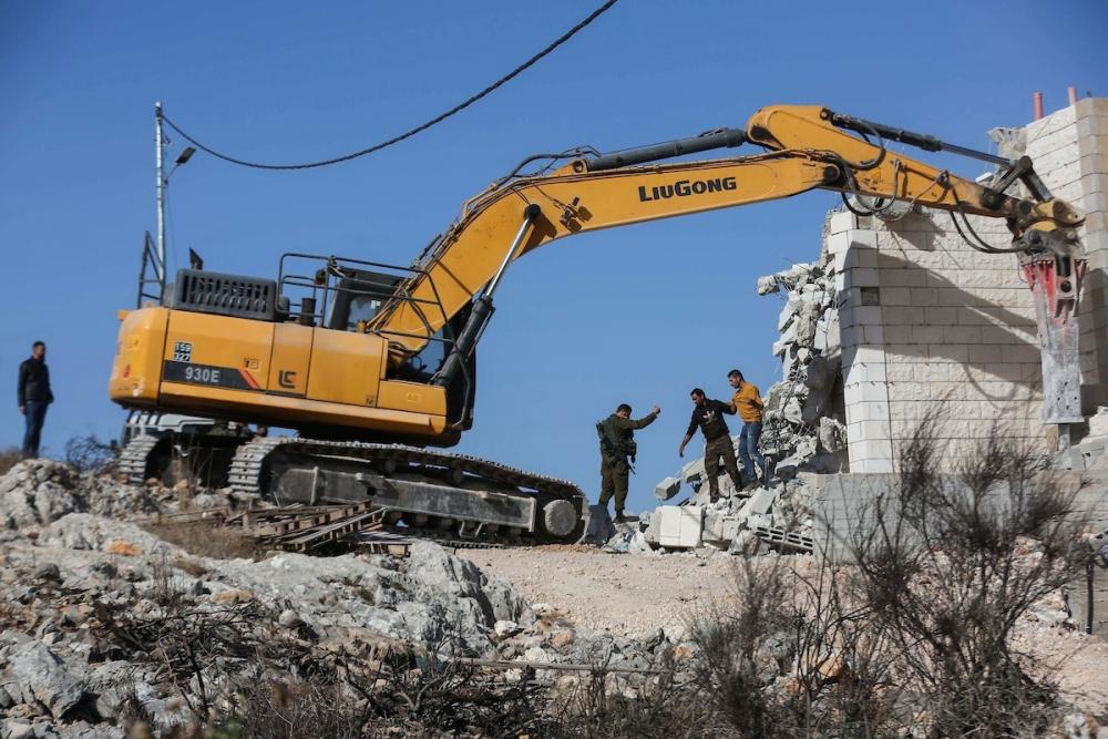 وداهمت الجرافات وقوات الاحتلال منطقة السهل الشرقي في المدينة ونفذت عملية الهدم تحت حماية قوات كبيرة من شرطة الاحتلال التي منعت وصول المواطنين إلى المكان.