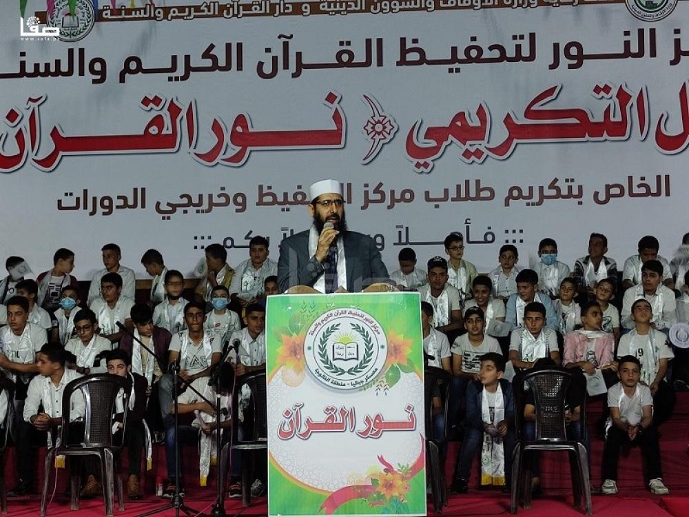 وحضر الحفل الذي نظمه "مركز النور لتحفيظ القرآن الكريم" التابع لدار القرآن الكريم والسنة، شخصيات رسمية ودعوية، أبرزهم عضو المكتب السياسي لحركة حماس سهيل الهندي، والشيخ الداعية هاني العلي.