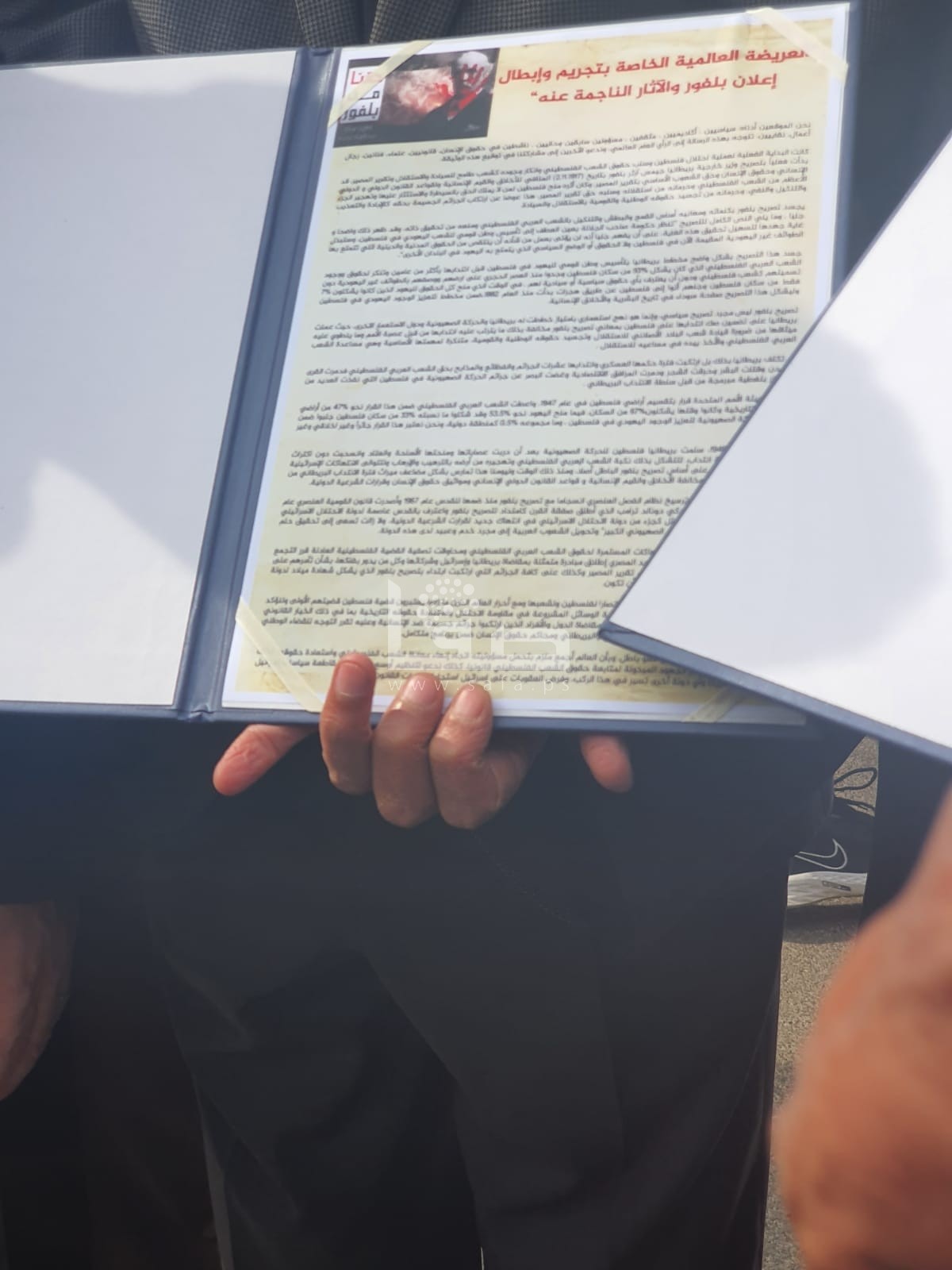 وسلمت الشخصيات الحكومة البريطانية عريضة بعنوان "العريضة العالمية الخاصة بتجريم وإبطال إعلان بلفور والآثار الناجمة عنه".