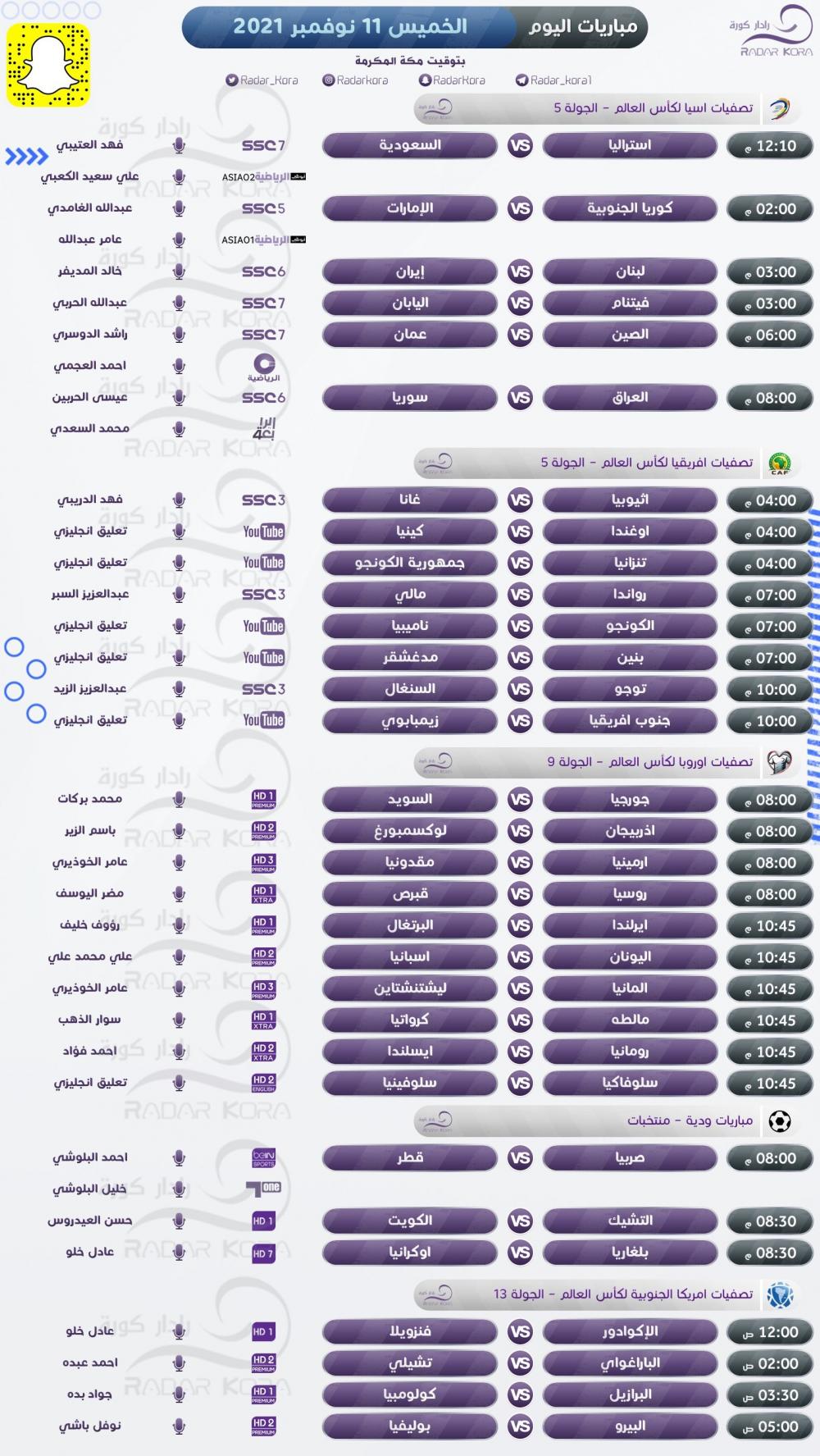 تتجه أنظار عشاق كرة القدم اليوم الخميس للعديد من المباريات القوية في التصفيات المؤهلة لكأس العالم بكرة القدم 2022 في قطر بمختلف القارات.
