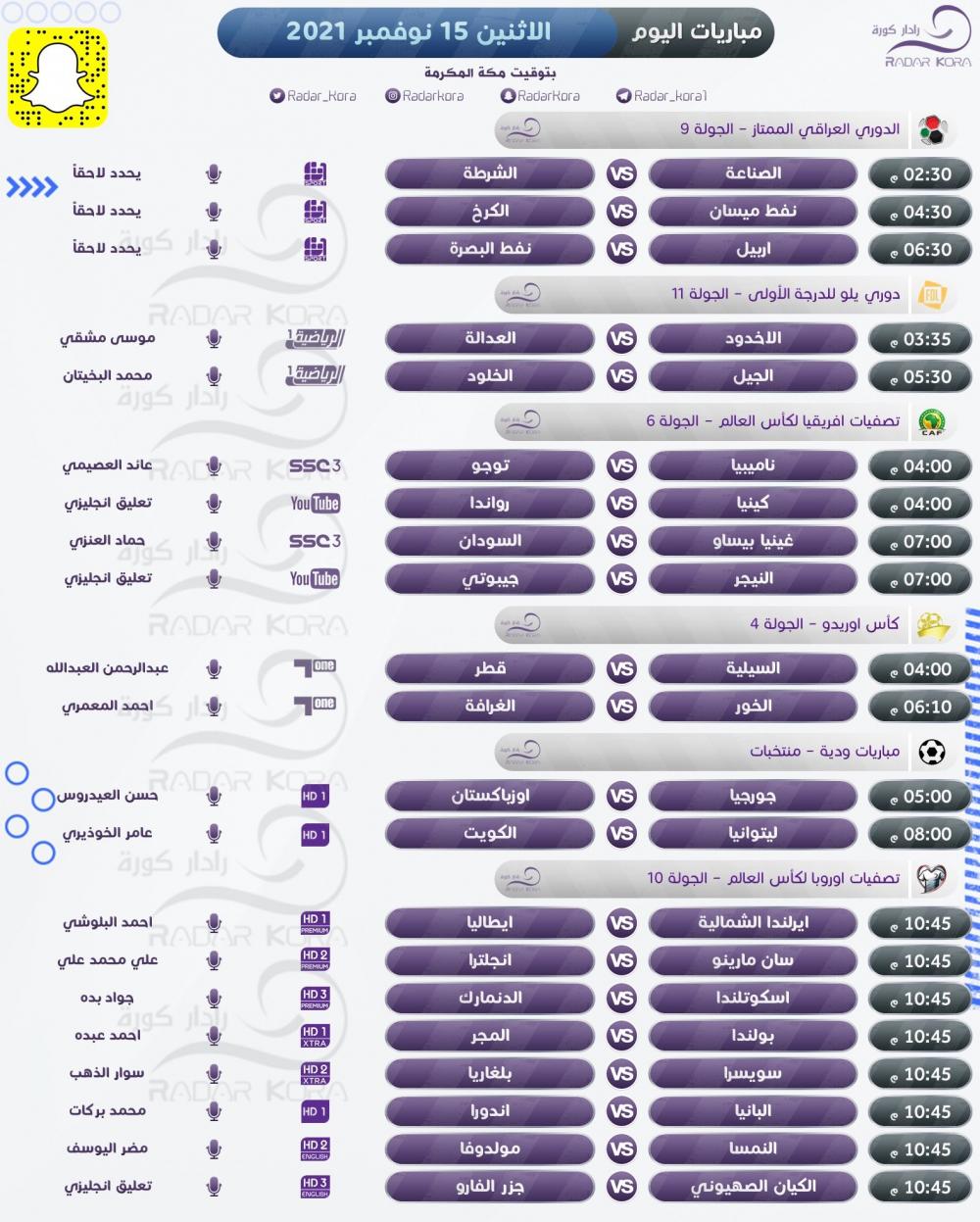جدول أبرز مباريات الاثنين في تصفيات كأس العالم
