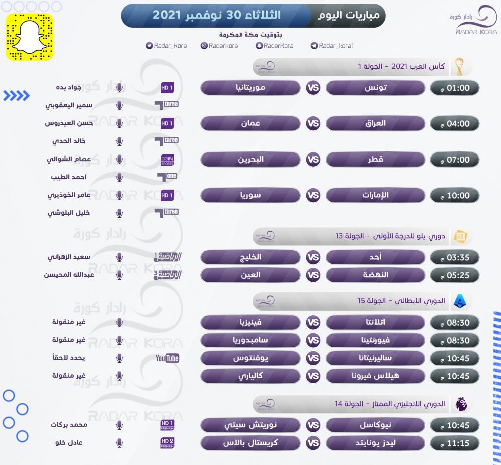 تتجه أنظار عشاق كرة القدم اليوم الثلاثاء لمباريات اليوم الأول من منافسات بطولة كأس العرب لكرة القدم التي تقام في قطر حتى 18 ديسمبر القادم.