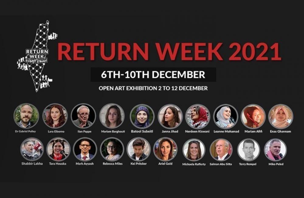 يشار إلى أن أسبوع العودة هي فعالية سنوية أطلقها مركز العودة الفلسطيني لأول مرة عام 2020 وتهدف إلى إحياء الذكرى السنوية لقرار حق العودة الفلسطيني رقم 194 الصادر عن الجمعية العامة للأمم المتحدة (11 كانون الأول / ديسمبر 1948)، وكذلك ذكرى الإعلان العالمي لحقوق الإنسان (10 كانون الأول / ديسمبر 1948)، بالإضافة إلى ذكرى تأسيس وكالة الأمم المتحدة لإغاثة وتشغيل اللاجئين الفلسطينيين الأونروا (8 كانون الأول / ديسمبر 1949).