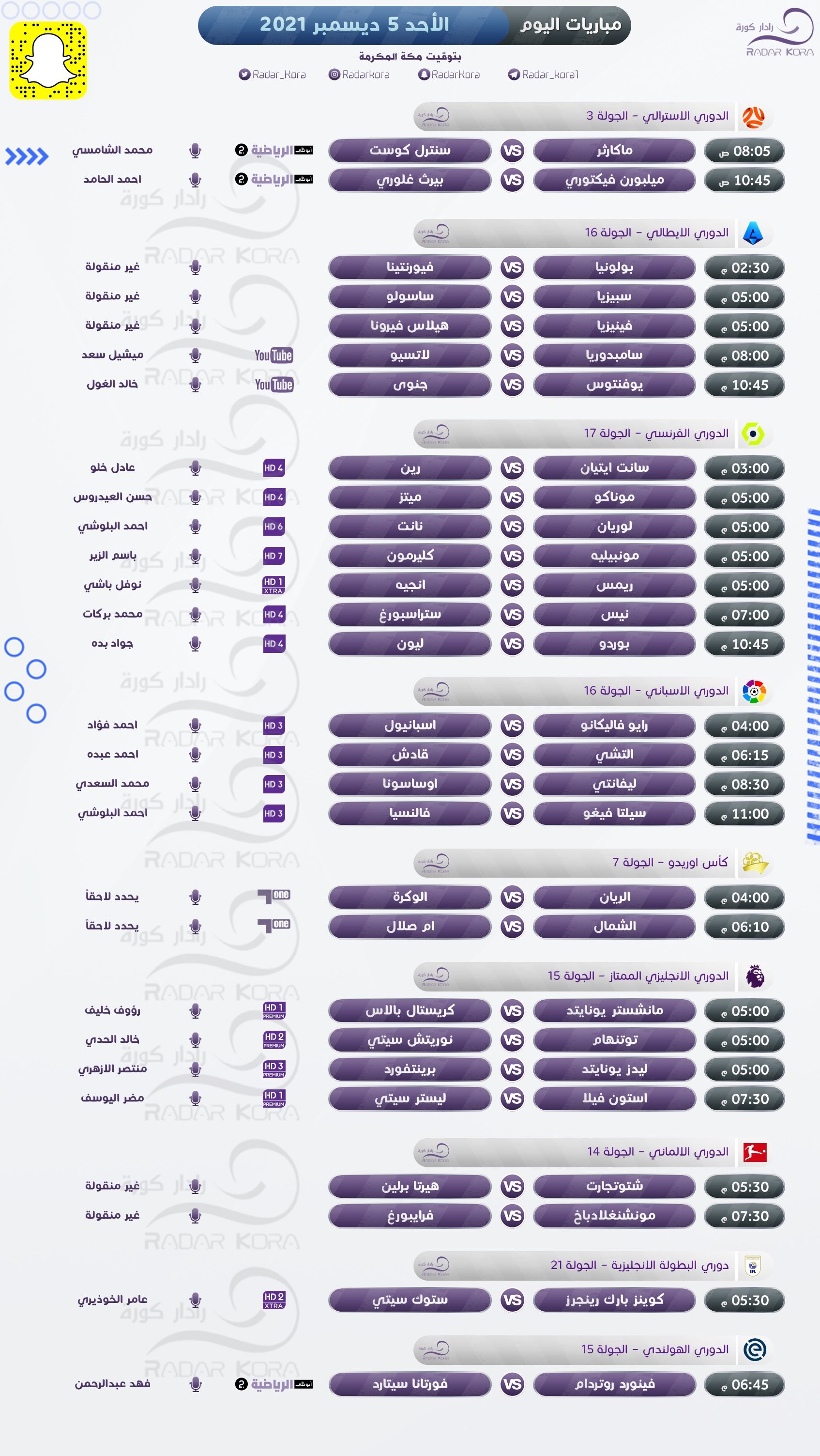 جدول أبرز مباريات الأحد في الدوريات الأوروبية