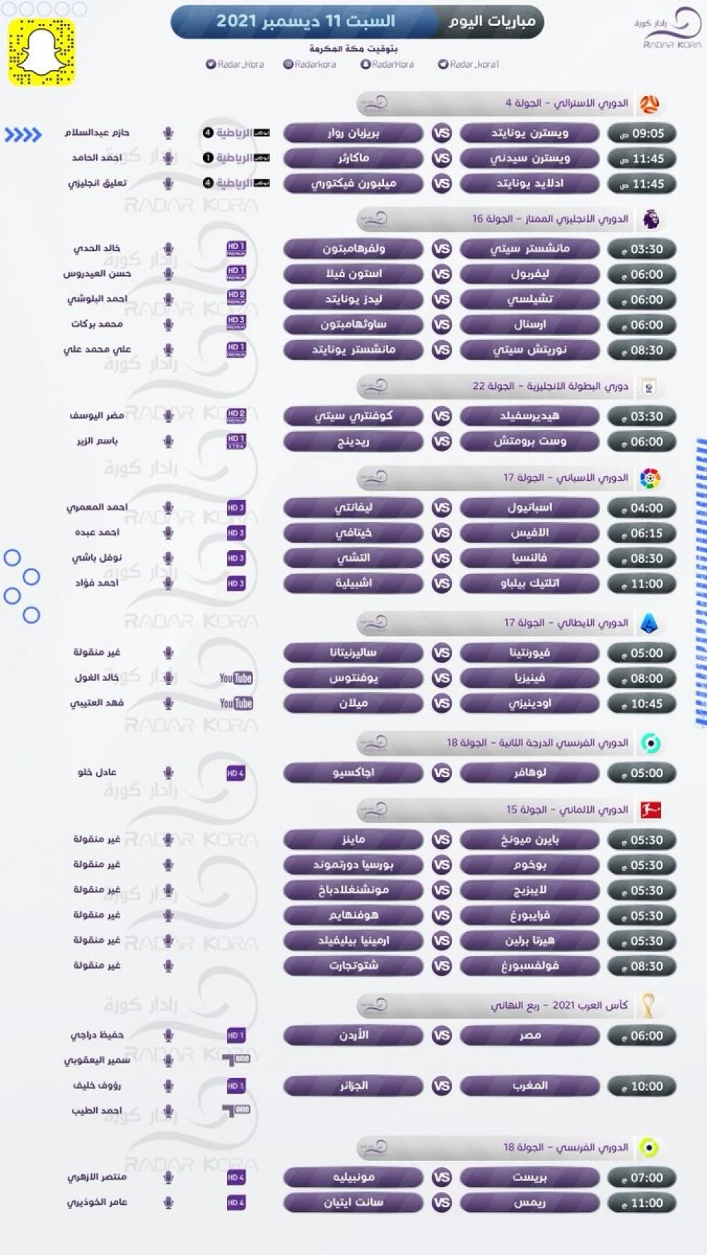 تتجه أنظار عشاق كرة القدم اليوم السبت لمباريات اليوم الثاني من منافسات دور الثمانية لبطولة كأس العرب بكرة القدم التي تقام في قطر حتى 18 ديسمبر الحالي.