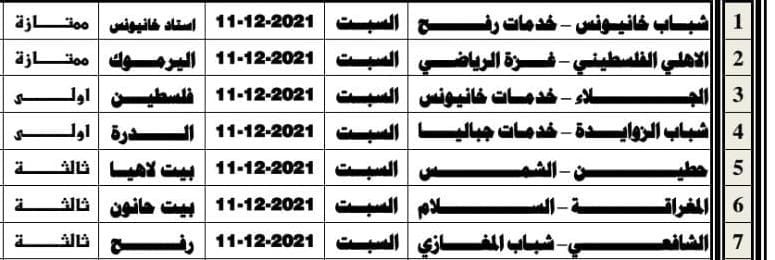 وفي أبرز المباريات يتقابل شباب خانيونس مع خدمات رفح، كما يلعب أهلي غزة مع غزة الرياضي في الدرجة الممتازة.