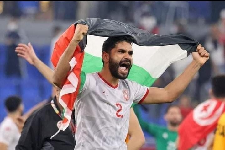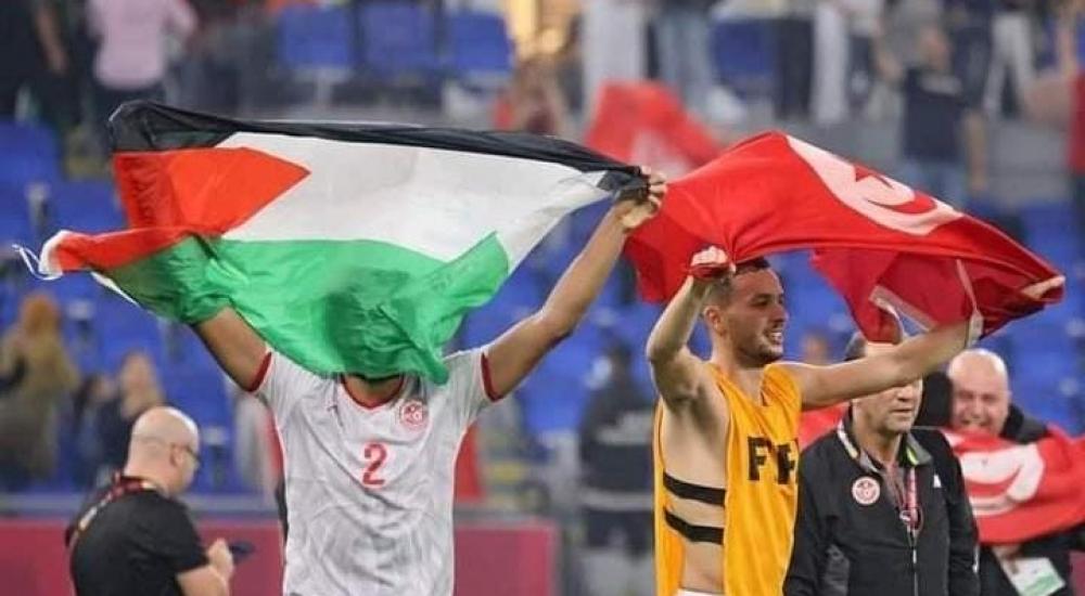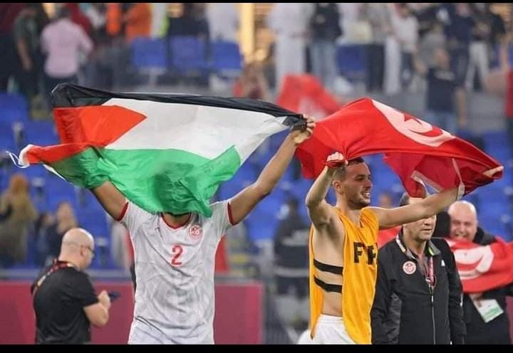 والتقطت الكاميرات صورة العلم الفلسطيني خلال احتفالات تونس،تعبيرًا عن تضامنهم مع القضية الفلسطينية.