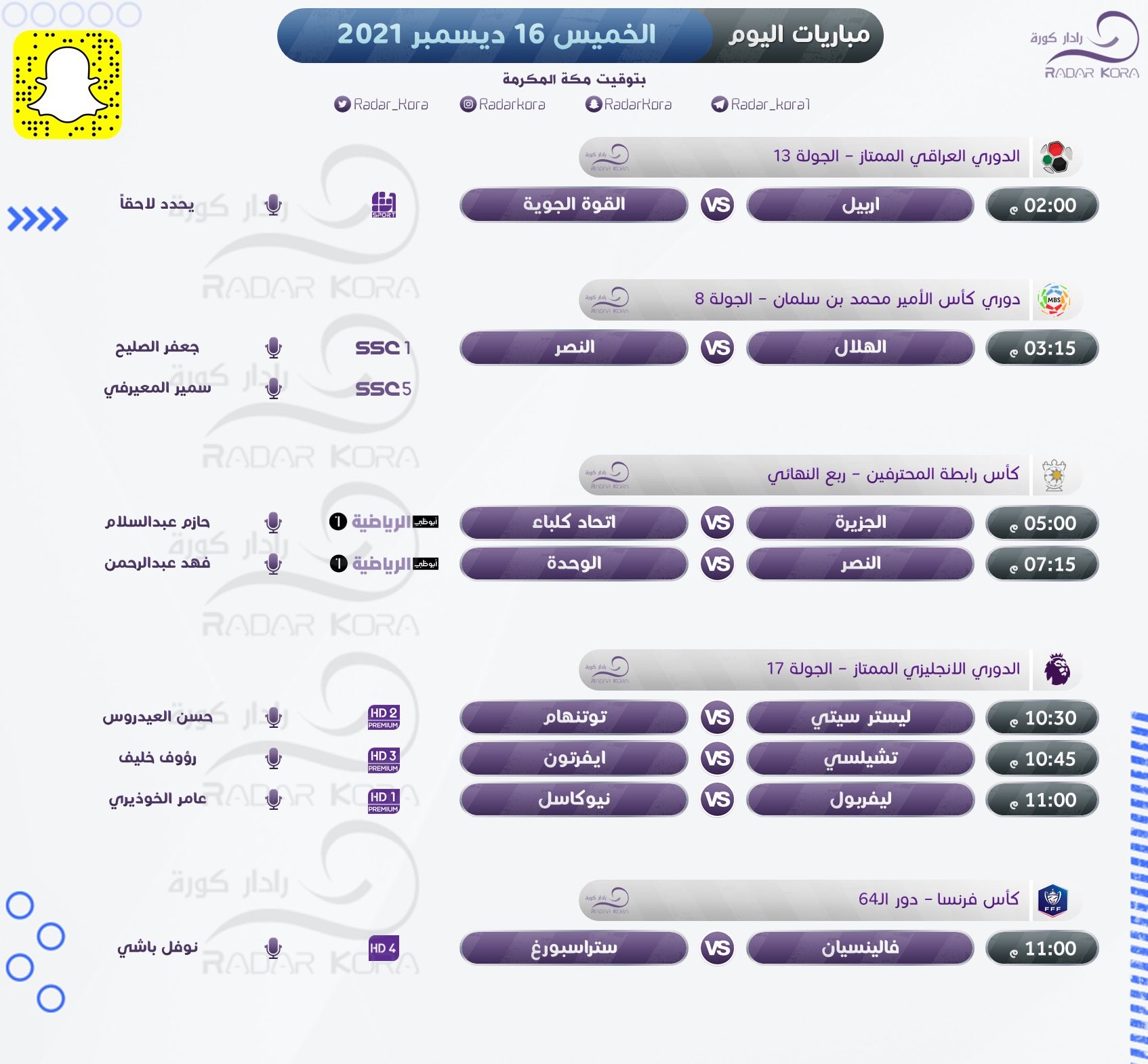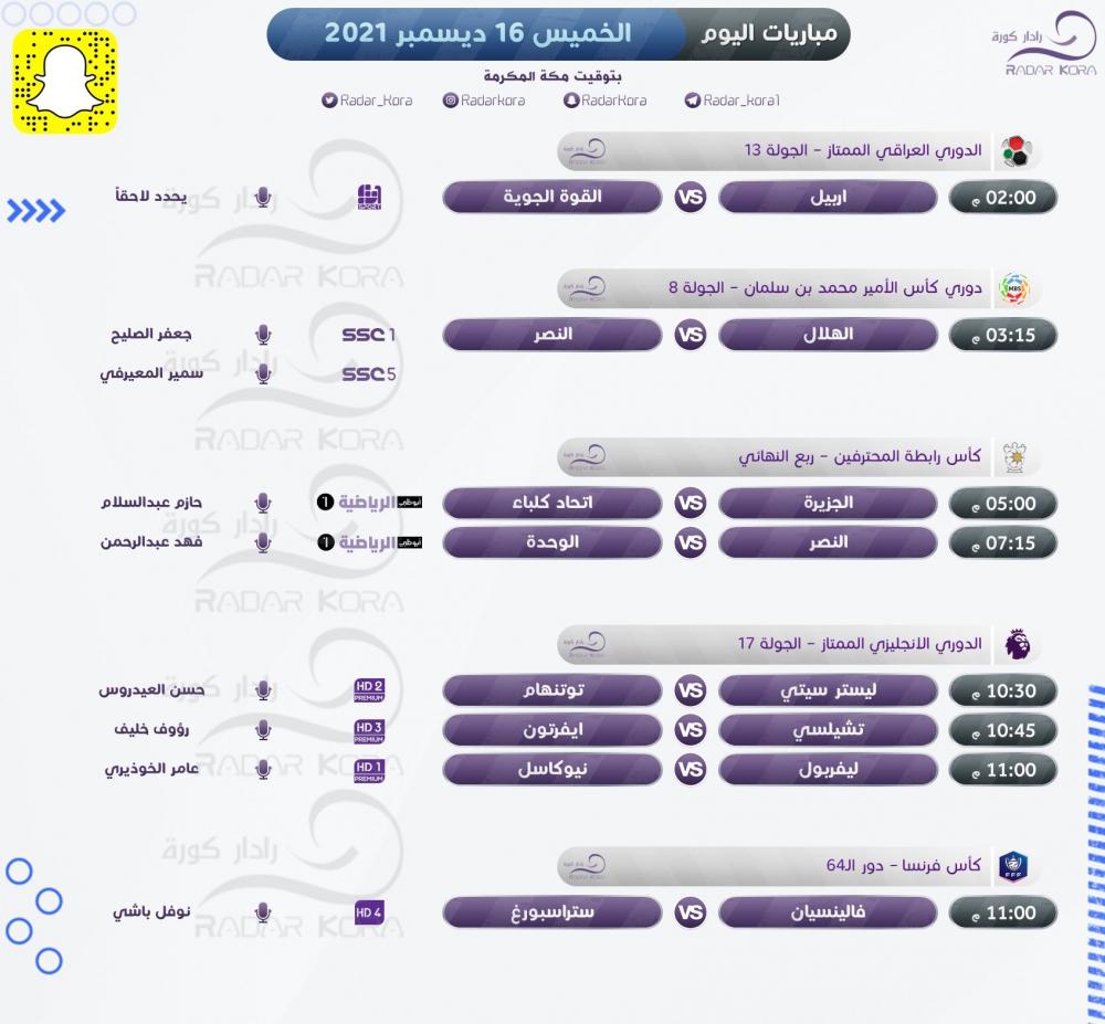 جدول أبرز مباريات الخميس في الدوريات الأوروبية والعربية