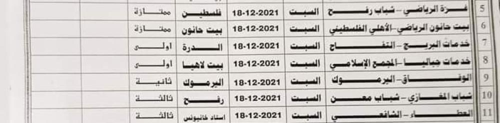 وفي أبرز المباريات يتقابل بيت حانون الرياضي مع أهلي غزة، كما يلعب غزة الرياضي مع شباب رفح في الدرجة الممتازة.