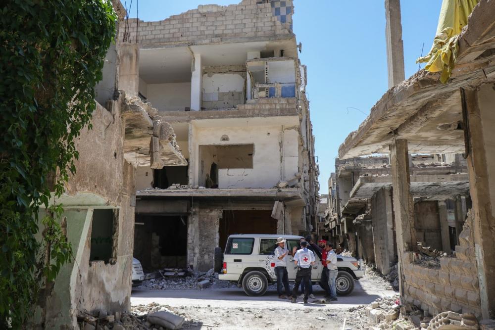 وذكر خميس أن نسبة ترحيل الأنقاض والأتربة والردميات من شوارع المدينة الرئيسية والفرعية بأحياء الثورة وتشرين والجولان الجنوبي والجولان الشمالي والاستقلال تجاوزت 60%، ولا تزال عمليات الترحيل متواصلة.