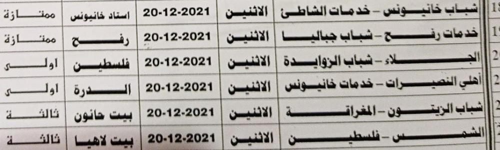 وفي أبرز المباريات يتقابل خدمات رفح مع شباب جباليا، كما يلعب شباب خانيونس مع خدمات الشاطئ بالدرجة الممتازة.