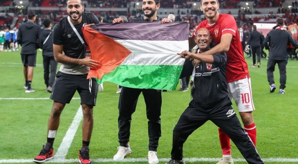 حرص لاعبو فريق الأهلي المصري لكرة القدم على رفع العلم الفلسطيني في ملعب "أحمد بن علي" في العاصمة القطرية الدوحة مساء الأربعاء، وذلك بعد التتويج بكأس السوبر الإفريقي على حساب الرجاء المغربي.