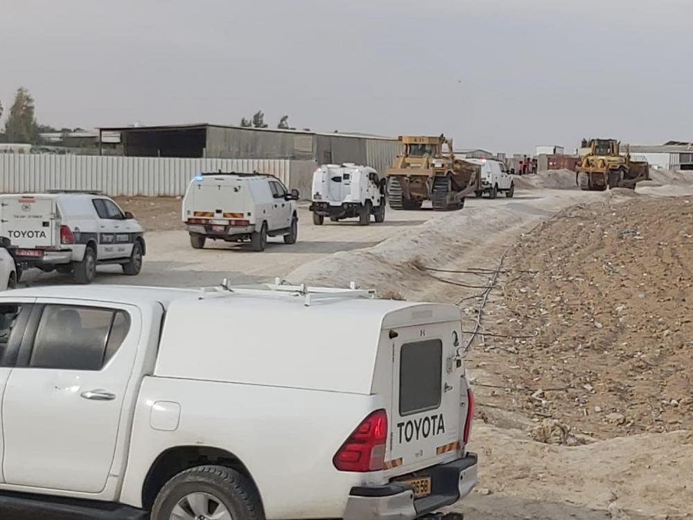 استأنفت جرافات الاحتلال الإسرائيلي صباح الثلاثاء عمليات تجريف الأراضي وإبادة المحاصيل الزراعية في منطقة النقب الفلسطيني المحتل بحماية من شرطة الاحتلال.