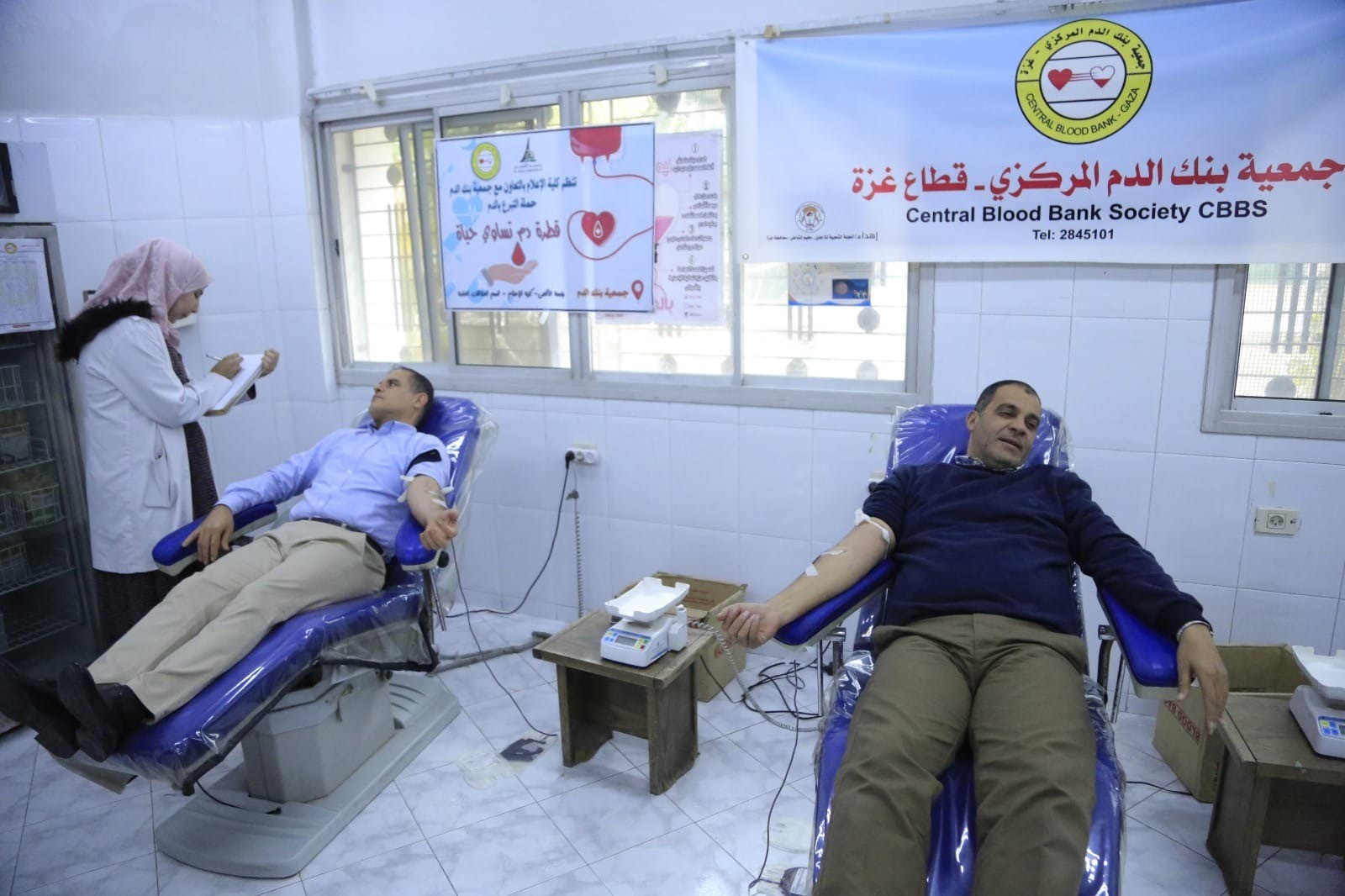 نظم قسم العلاقات العامة في كلية الاعلام بجامعة الأقصى حملة تبرع بالدم بالتعاون مع جمعية بنك الدم في غزة.