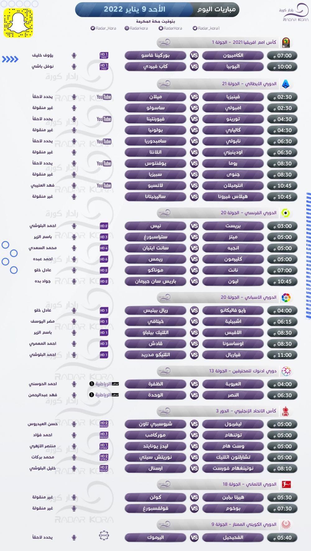 ويترقب عشاق كرة القدم الإنجليزية مباريات ليفربول مع شروسبري تاون، ونوتينجهام فورست مع أرسنال، وتوتنهام هوتسبير مع موركامب في الدور الثالث من بطولة كأس الاتحاد.