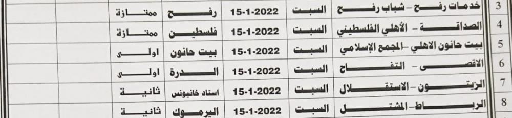 وفي أبرز المباريات يتقابل خدمات رفح مع شباب رفح، والصداقة مع أهلي غزة بالدرجة الممتازة.