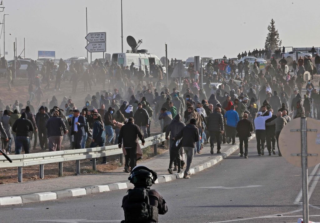 ويشهد النقب الفلسطيني احتجاجات واسعة منذ خمسة أيام ضمن الهبة الشعبية لمواجهة الهجمة الاستيطانية والتجريف والهدم الذي تتعرض له قراه منذ أشهر.
