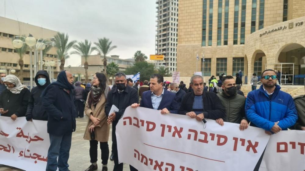 تظاهر عدد من الأهالي والناشطين السياسيين والقيادات الفلسطينية في النقب الأحد، لليوم السابع على التوالي، أمام مبنى المحاكم في مدينة بئر السبع، وذلك إسنادًا للمعتقلين واحتجاجًا على استمرار حملات الاعتقالات بالنقب.