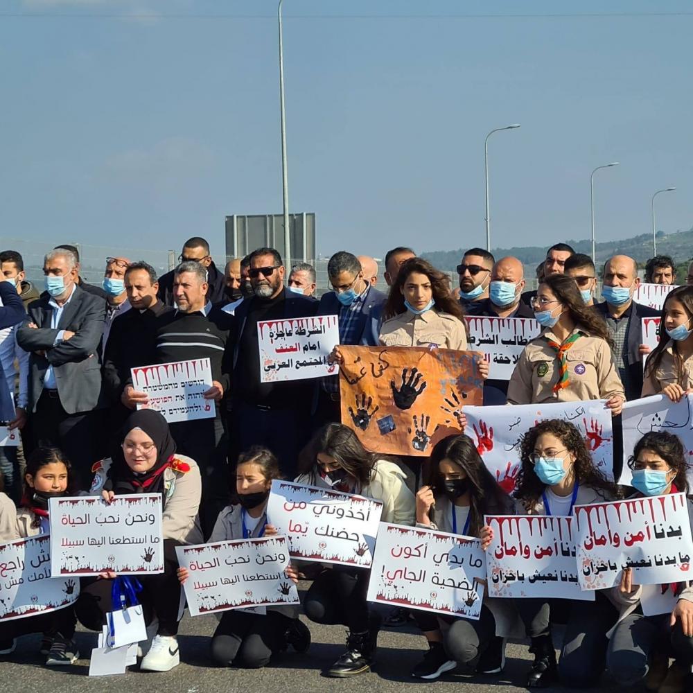 ورفع المتظاهرون لافتات كتبت عليها شعارات، ورددوا هتافات مطالبة بالعيش في أمان، ونبذ العنف والجريمة.