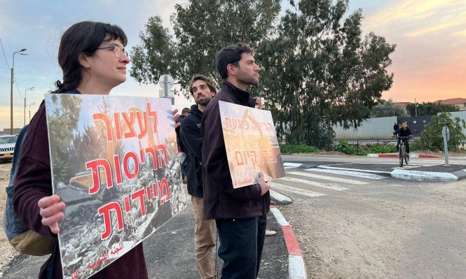 ورفع المتظاهرون لافتات منددة بسياسة الهدم، وبخاصة ضد رئيس بلدية الاحتلال باللد يائير رفيفو، ووصفوه بالـ"عنصري".