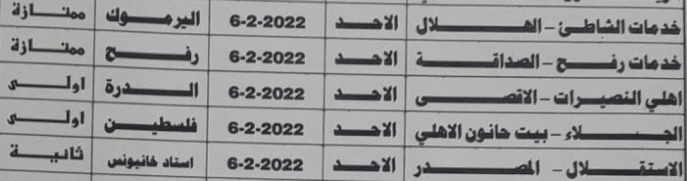وفي أبرز المباريات يتقابل خدمات رفح مع الصداقة، وخدمات الشاطئ مع هلال غزة في الدرجة الممتازة.