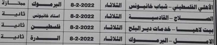 وفي أبرز المباريات يتقابل أهلي غزة مع شباب خانيونس في الدرجة الممتازة.