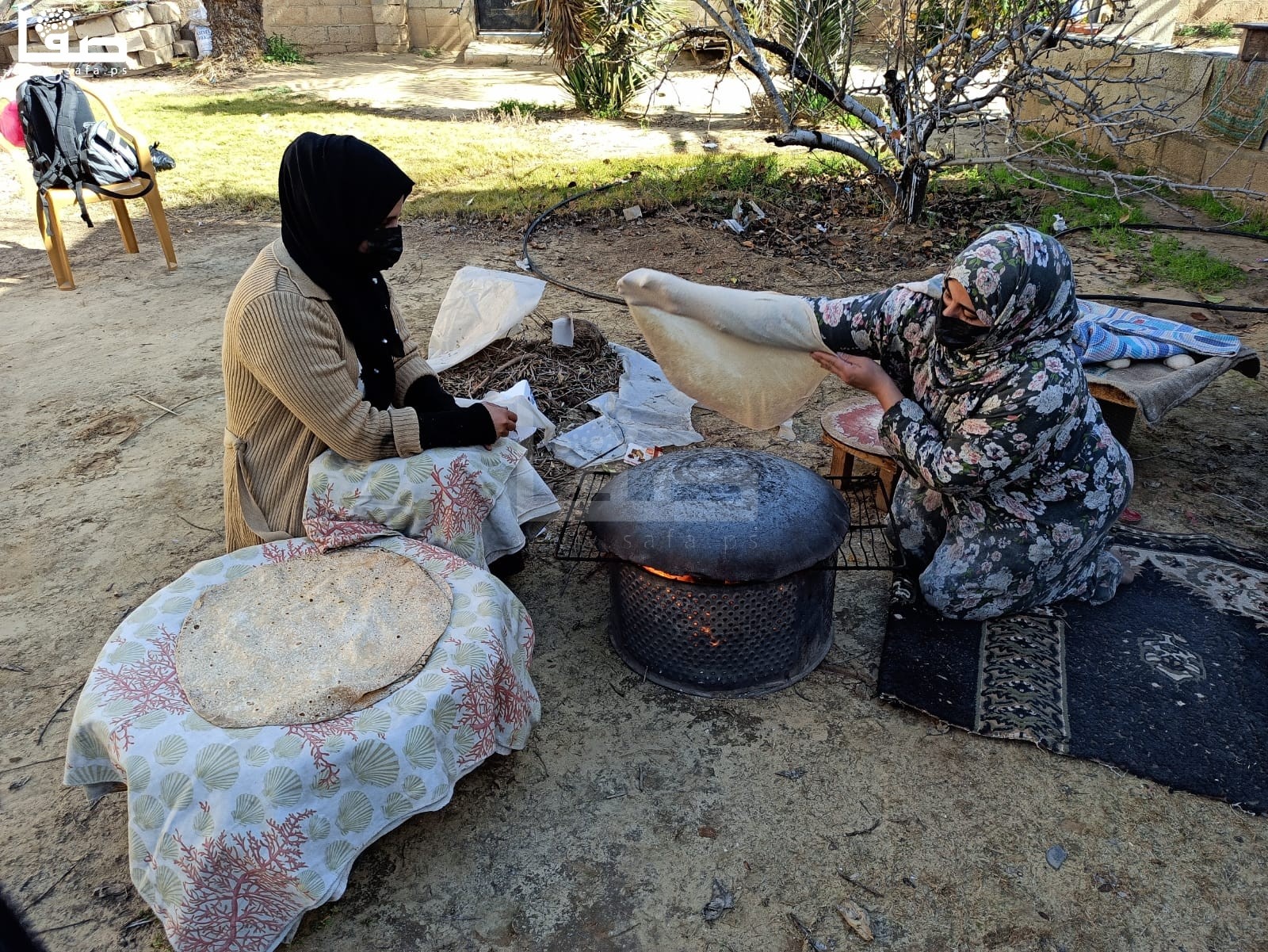 تتوجه "رغد" التي تحتضن المشروع في فناء منزلها بمعاونة زوجها، لإشعال النار داخل فرن الطين التراثي، وتبدأ بعدها "سجود" التي تحمل لوح كُرات العجين على رأسها وصولاً للفرن، بمساعدة قريبتها وتصفيفها ووضعها داخل أكياس ثم الانتقال بذات الطريقة لخبز الصاج.