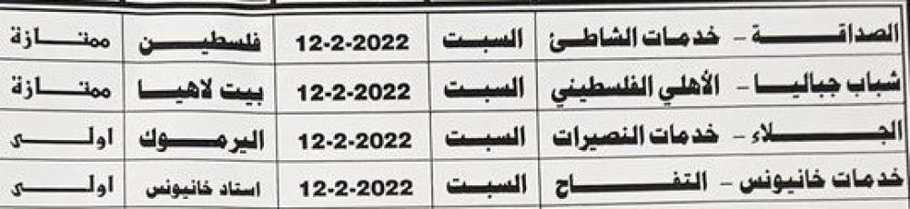 وفي أبرز المباريات يتقابل الصداقة مع خدمات الشاطئ، وشباب جباليا مع أهلي غزة بالدرجة الممتازة.