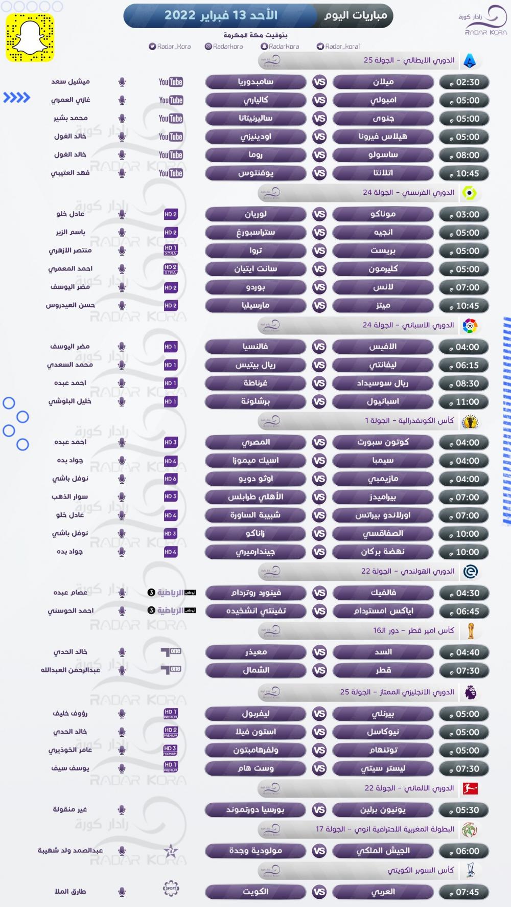 تتجه أنظار عشاق كرة القدم اليوم الأحد لعدة مباريات في الدوريات الأوروبية الكبرى.
