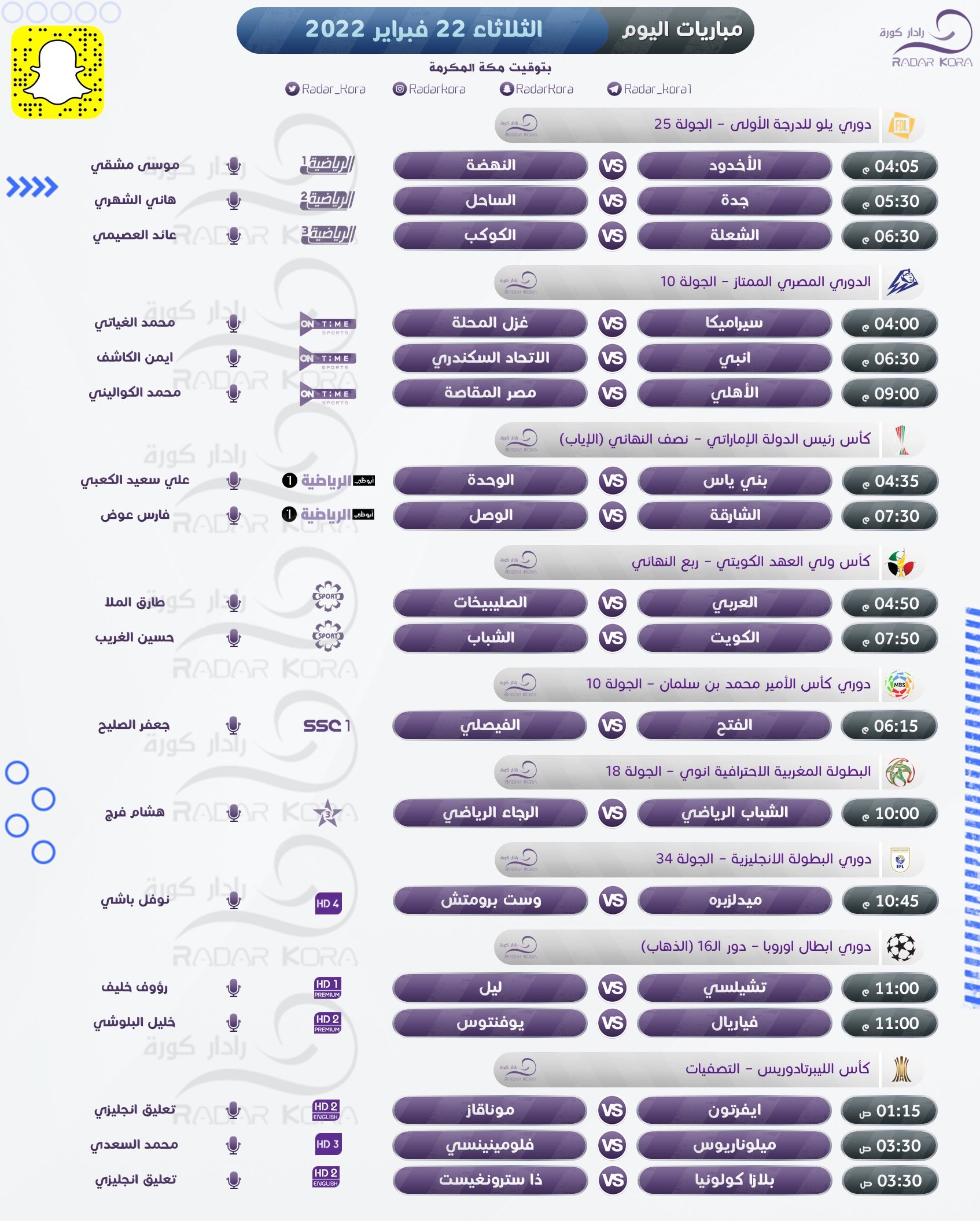 وفي الدوري المصري الممتاز يلعب الأهلي مع مصر المقاصة، وسيراميكا كليوباترا مع غزل المحلة، وإنبي مع الاتحاد السكندري بالجولة العاشرة للمسابقة.