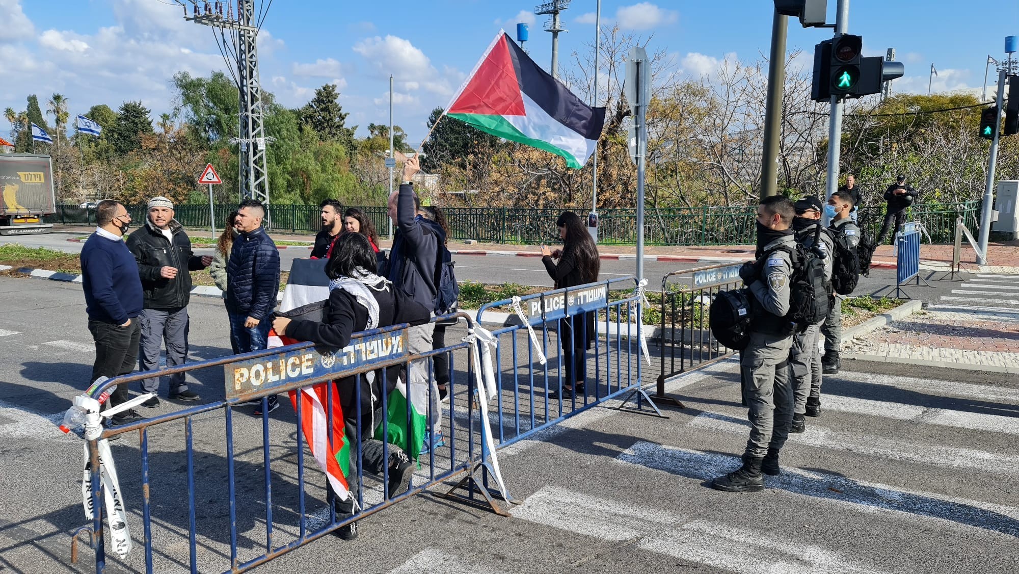 شارك العشرات الجمعة في وقفة تحت عنوان "جمعة الصمود" نصرة للأسرى الفلسطينيين وحي الشيخ جراح في القدس على مفرق عرعرة في منطقة وادي عارة بالداخل الفلسطيني المحتل.
