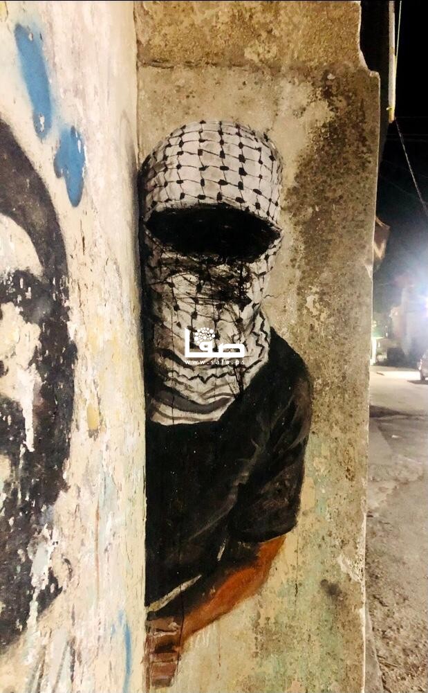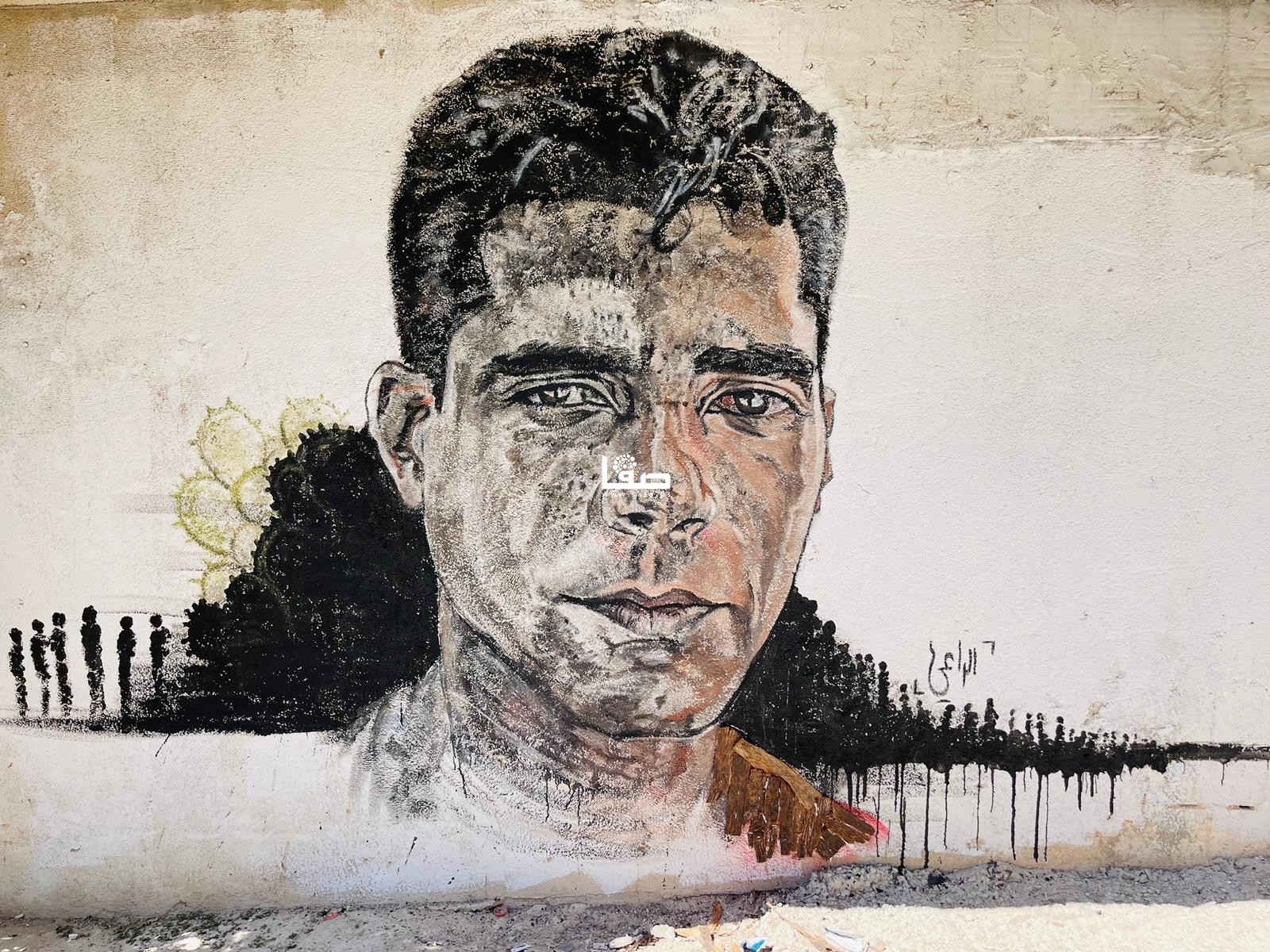 تجاعيد جده حاملاً مفتاح منزله في الرملة المحتلة، وسلاسل الأسر وجنائز الشهداء، وملثم مطارد بين أزقة المخيم، وكفّ طفل بريء يضع حجراً في وجه جندي مدجج بالسلاح، تلك المشاهد التي كبر عليها الفنان الشاب محمد الراعي وحرص على إحيائها على جدران المخيم.
