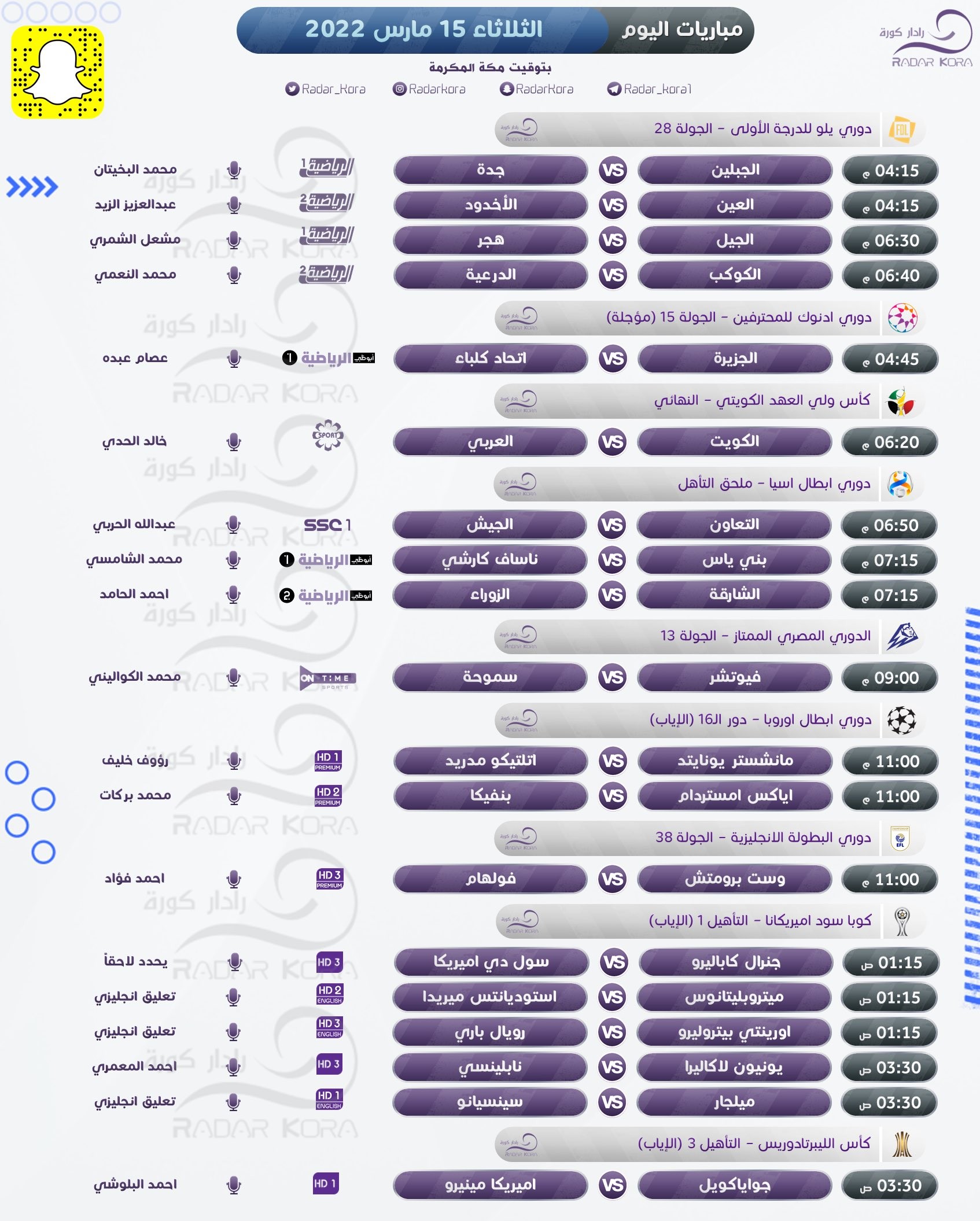 ويترقب عشاق البطولة الأوروبية لقاء مانشستر يونايتد الإنجليزي مع أتليتكو مدريد الإسباني، وأياكس أمستردام الهولندي مع بنفيكا البرتغالي.