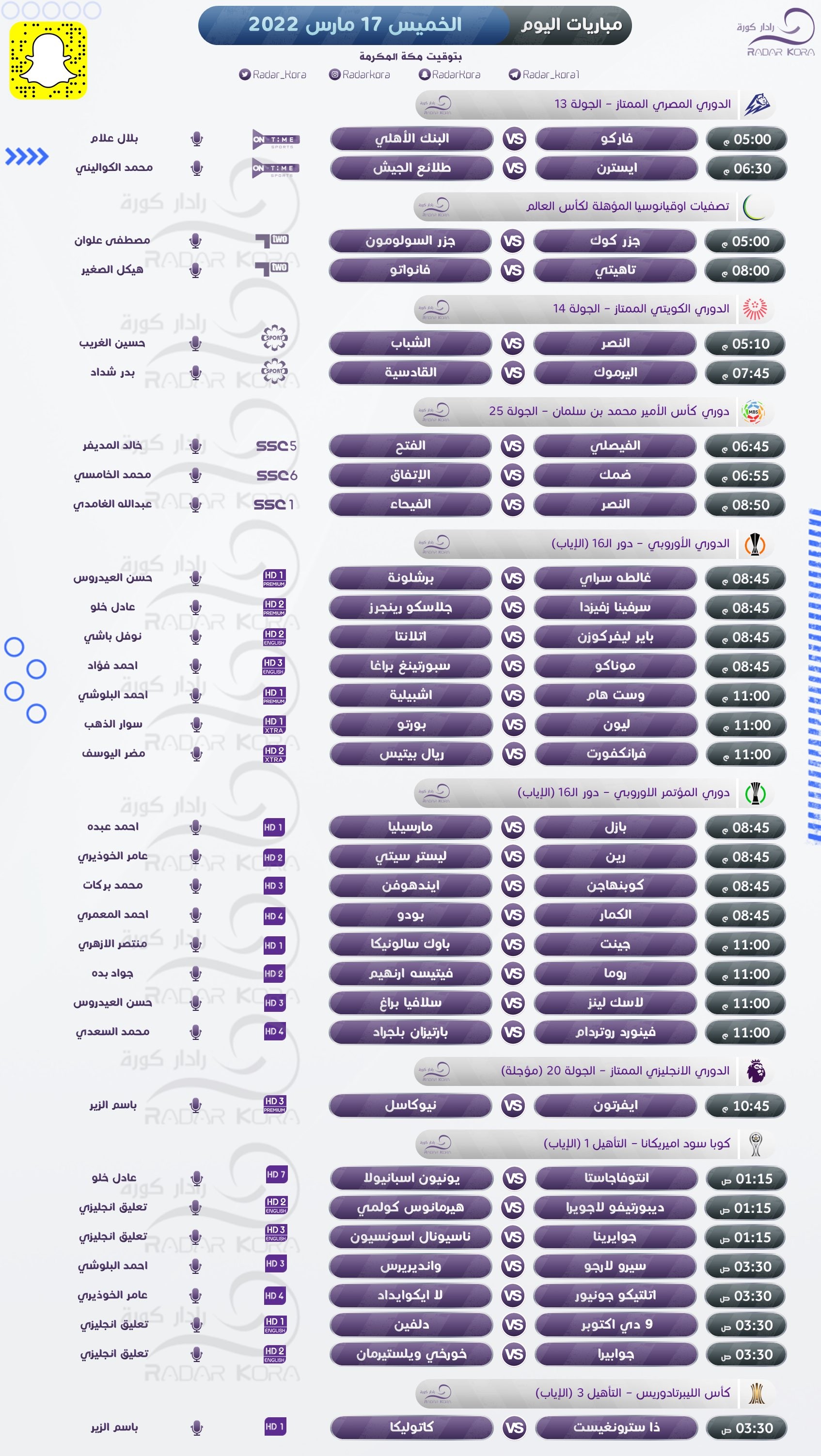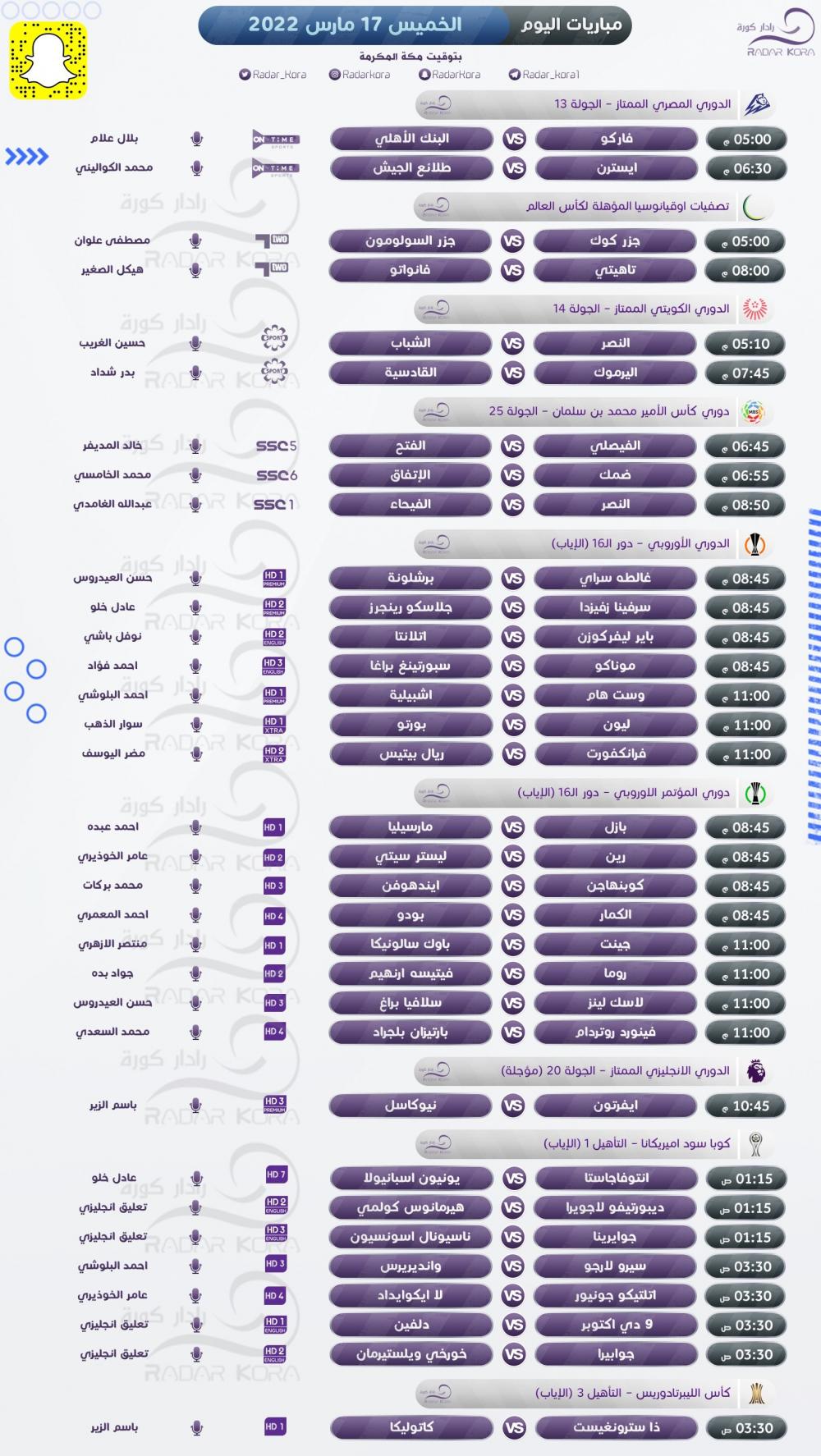 وتشهد بطولة دوري المؤتمر الأوروبي العديد من المباريات، يلتقي في أهمها بازل السويسري مع مارسيليا الفرنسي، ورين الفرنسي مع ليستر سيتي الإنجليزي، وروما الإيطالي مع فيتيسه أرنهيم الهولندي.