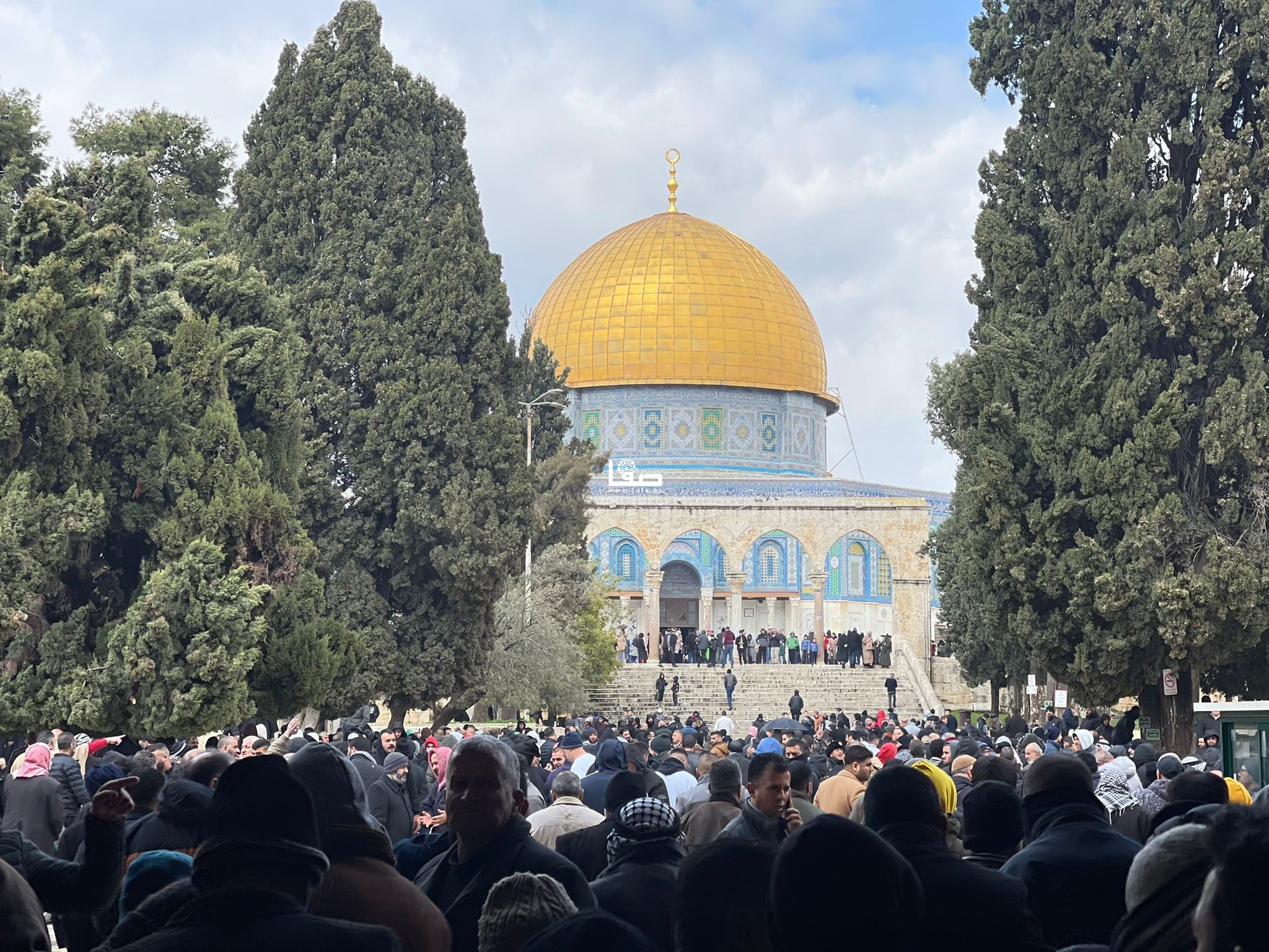 أدى عشرات الآلاف صلاة ظهر يوم الجمعة في المسجد الأقصى المبارك، رغم تضييقات قوات الاحتلال الإسرائيلية والأجواء الباردة وغزارة الأمطار.
